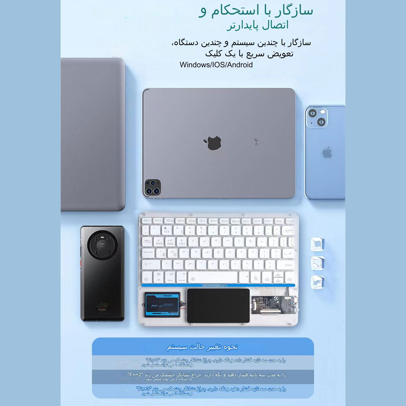 | مشخصات کیبورد بلوتوثی دارای تاچپد با طراحی شفاف کوتتسی | |