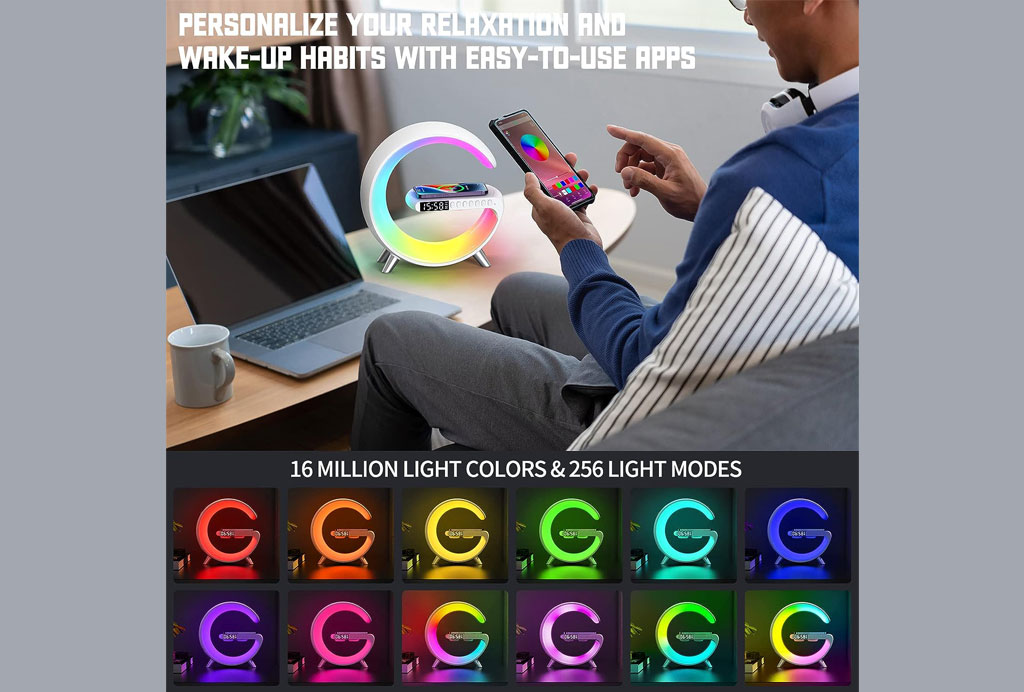 چراغ رومیزی، شارژر بی سیم، ساعت رومیزی هوشمند، ساعت خواب ADONG Smart Light Sound Machine