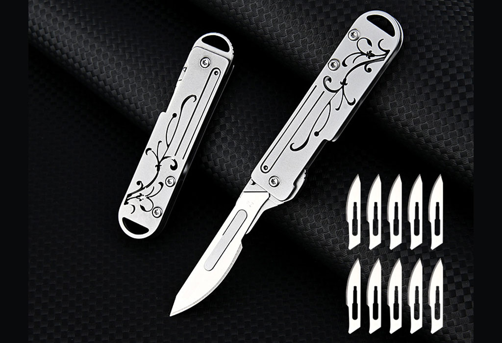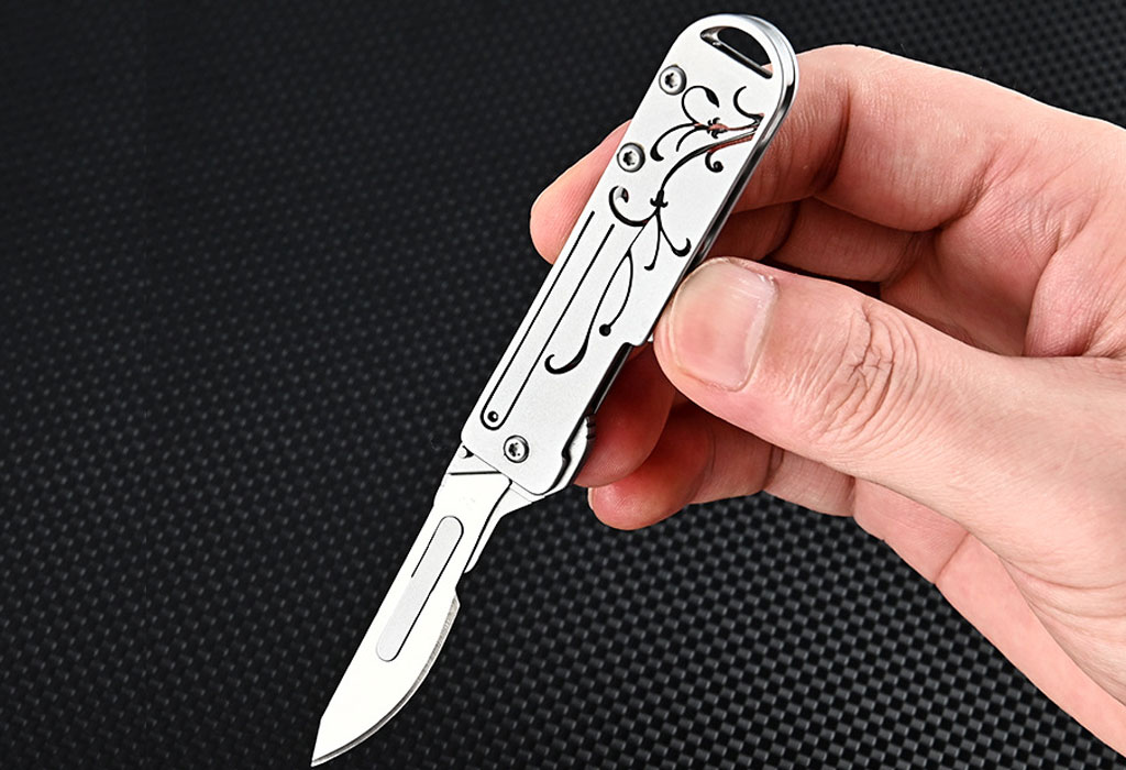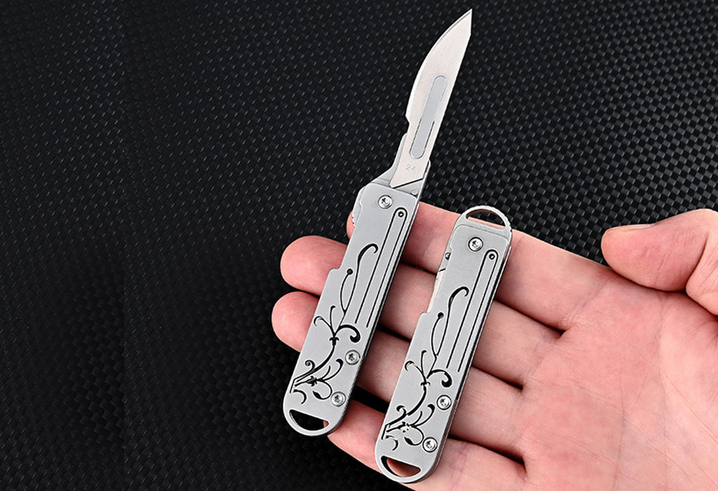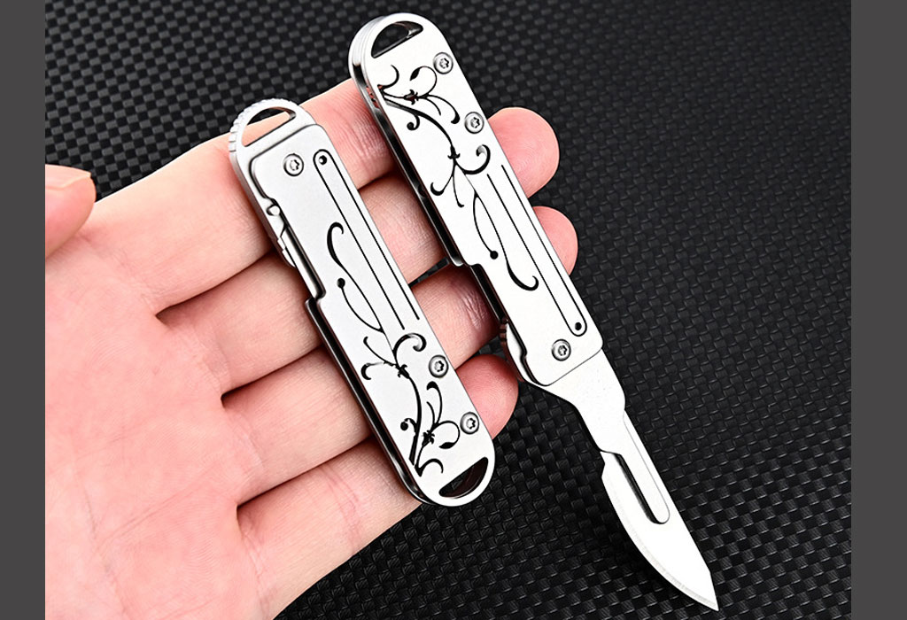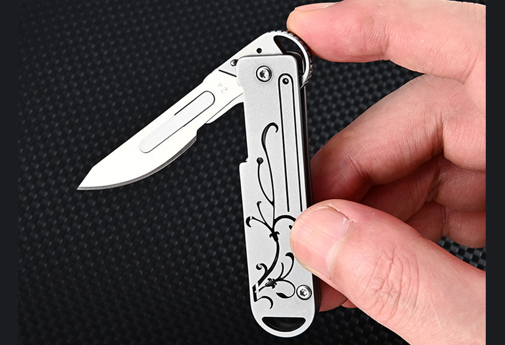 چاقو آنباکسینگ فلزی تاشوی قابل آویز از دسته کلید Stainless Steel Utility Unpacking Knife