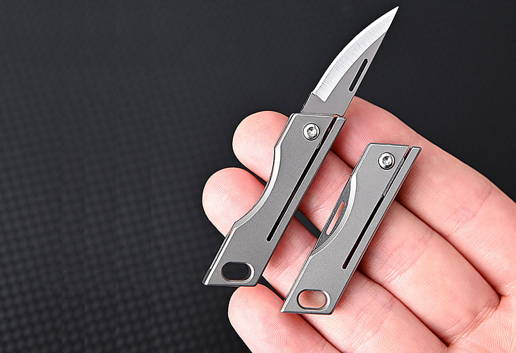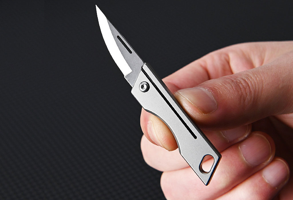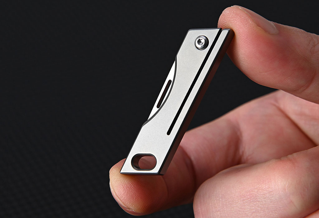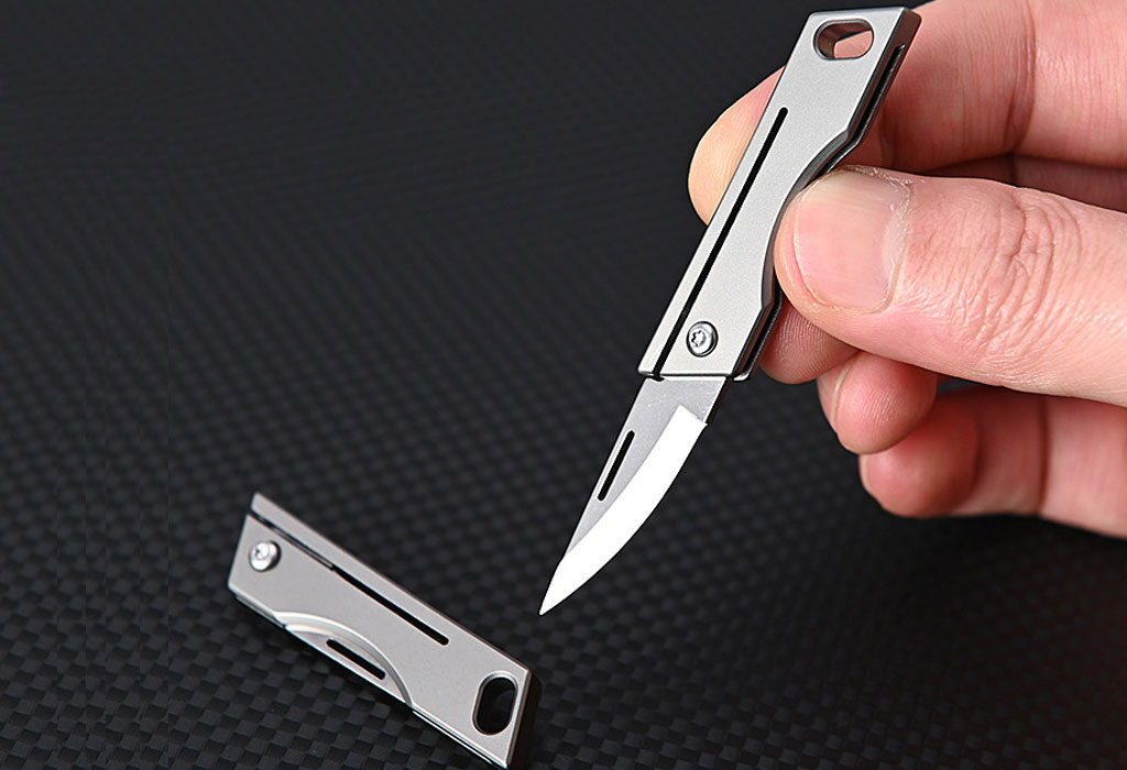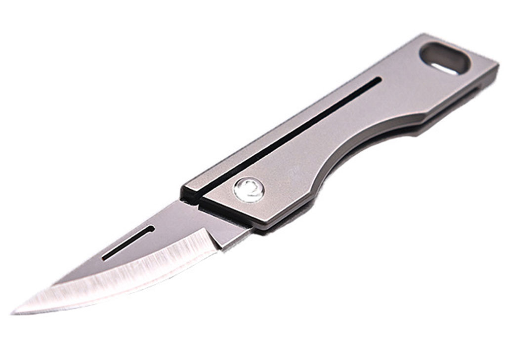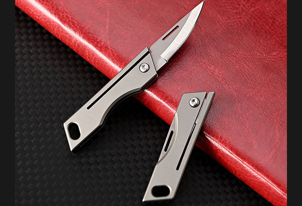 چاقو آنباکسینگ تیتانیومی تاشوی قابل آویز از دسته کلید Titanium alloy mini folding unboxing knife D2
