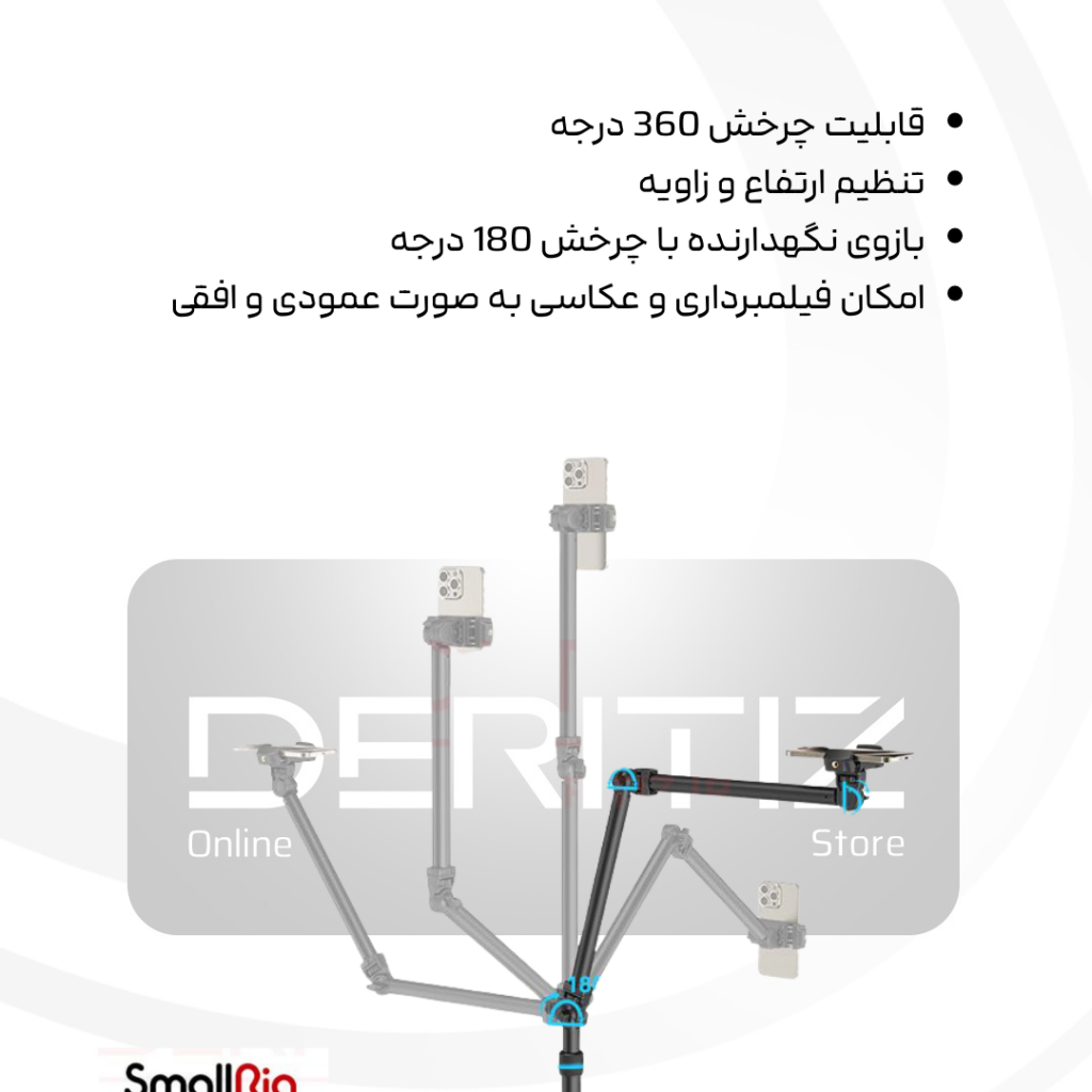 یکی از ویژگیهای بارز پایه SmallRig، قابلیت چرخش ۳۶۰ درجه آن است. این قابلیت به کاربران این امکان را میدهد که بتوانند از زوایای مختلف عکاسی کنند و به راحتی تصاویر جذاب و خلاقانهای تولید نمایند. برای عکاسان و تولیدکنندگان محتوا، این ویژگی بسیار مهم است، زیرا میتوانند بدون نیاز به جابجایی پایه، زاویه عکاسی خود را تغییر دهند و از لحظات خاص به بهترین شکل ممکن ثبت کنند.