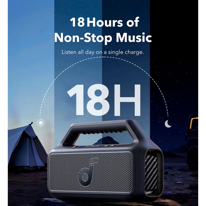 گوش دادن تمام روز در همه جا: بلندگوی فضای باز Boom 2 SE ضربات را به مدت ۱۸ ساعت با یک بار شارژ پخش می کند و با پاوربانک داخلی می توانید تلفن خود را در هر کجا که هستید روشن نگه دارید. (زمان پخش ممکن است بسیار بر اساس سطح صدا و محتوای پخش باشد.)