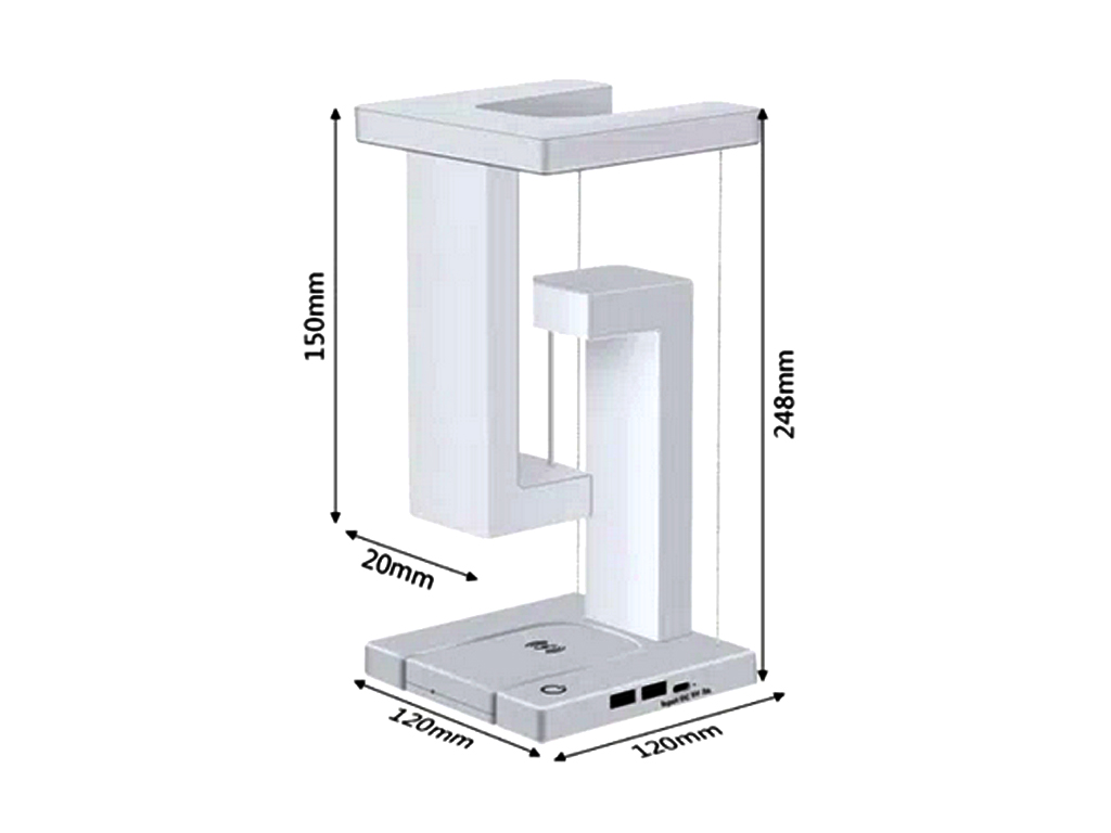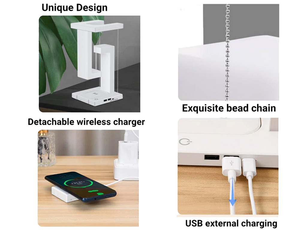 بخش پایینی آن مربوط به شارژر بی سیم است که با یک بازو به چراغ LED با نور نرم متصل شده و کلیدی لمسی هم در بالای چراغ طراحی شده است.
