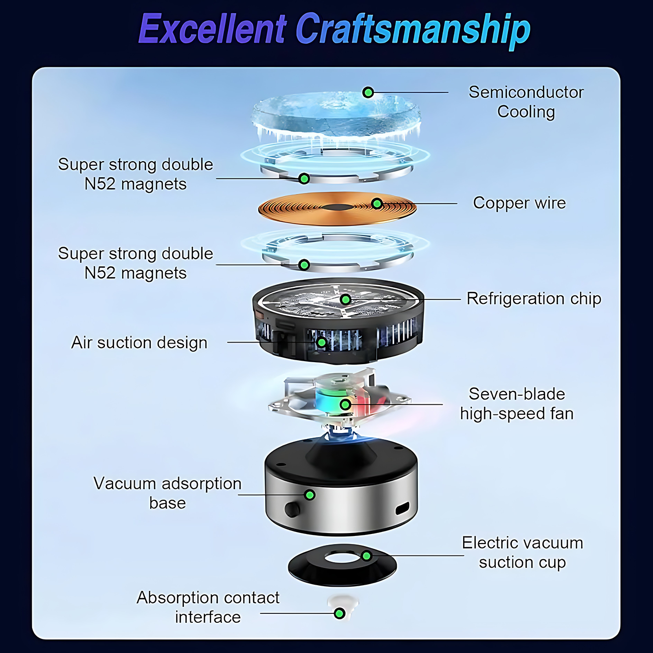 هولدر مکشی مگنتی، شارژر بیسیم 15 وات و فن خنککننده گوشی موبایل قابل شارژ چندکاره XT60-L