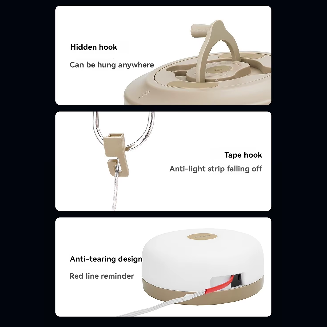 باتری لیتیومی 2600 میلیآمپری لامپ قابل حمل NE20363 با درگاه Type-C شارژ میشود و عملکردی قابل اعتماد را تضمین میکند. شما میتوانید در حالت لامپ یا ریسه بهطور جداگانه تا ساعتها از روشنایی بهرهمند شوید. جمع شدن ریسه در کمتر از 20 ثانیه نیز حمل و آمادهسازی آن را بسیار راحت کرده است.