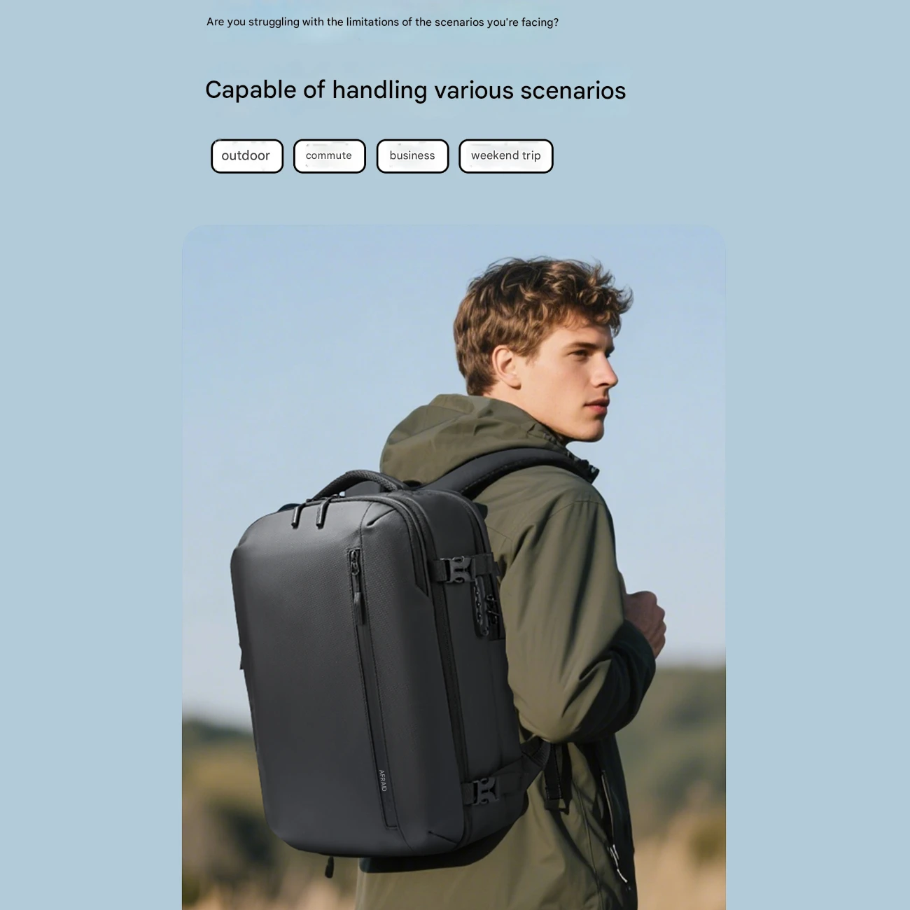 - سفرهای کوتاه و تعطیلات آخر هفته: با ظرفیت کافی برای لباسها، لوازم بهداشتی و جداسازی خشک-مرطوب، وسایل را مرتب نگه میدارد و مانند یک چمدان کوچک عمل میکند، ایدهآل برای سفرهای 5 تا 7 روزه بدون نیاز به بار اضافی.