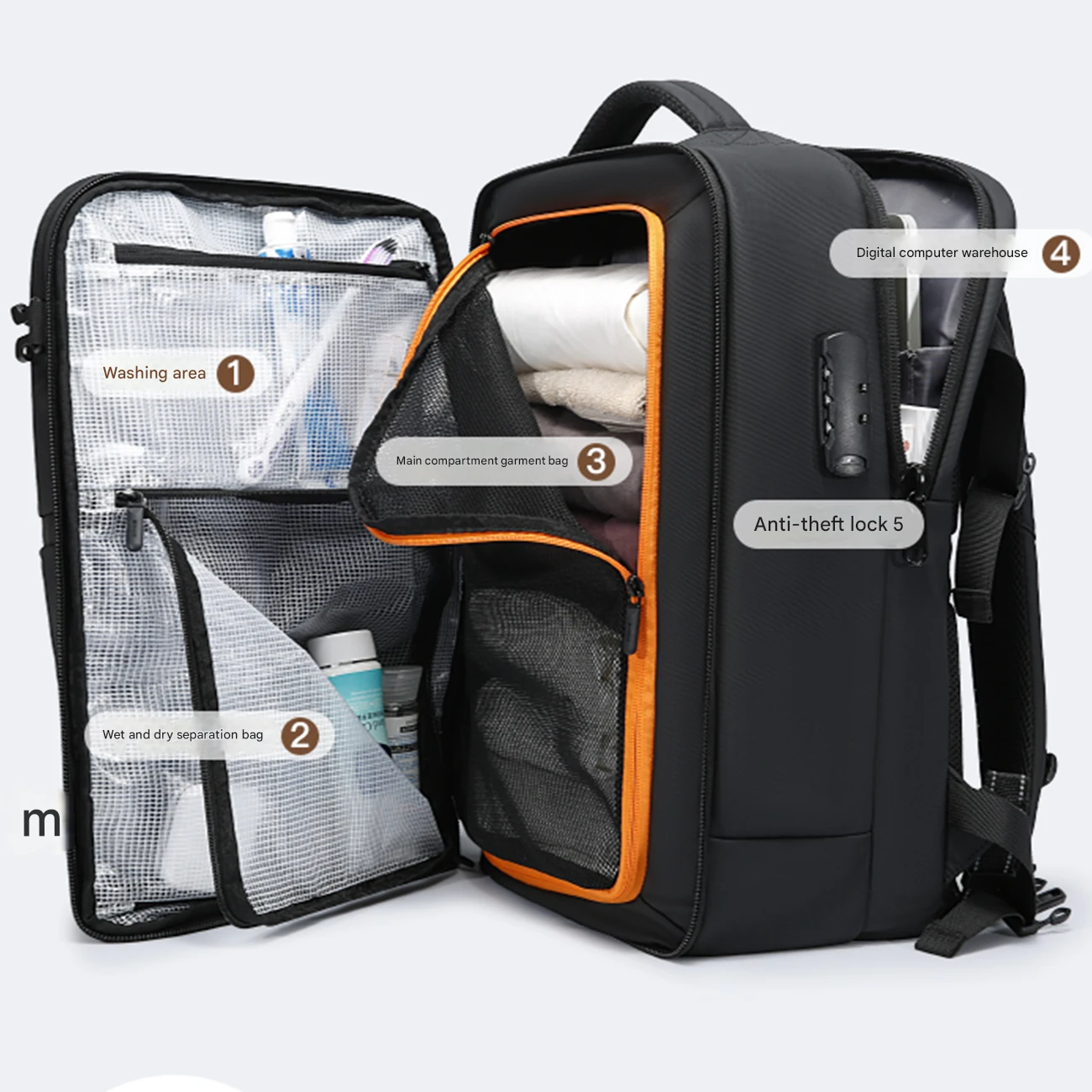 جیب پشتی مخفی برای نگهداری اشیای قیمتی مانند کیف پول یا پاسپورت، همراه با قفل زیپ اصلی، سطح بالایی از امنیت را فراهم میکند و از دسترسی آسان دزدها در مکانهای شلوغ مانند مترو یا فرودگاه جلوگیری مینماید. همچنین، وجود قفل رمزدار سهرقمی (قابل تنظیم) در کناره کوله، امنیت وسایل ارزشمند شما را در سفرها و مکانهای عمومی تضمین میکند. این طراحی ضدسرقت Bange BG-7876، در مقایسه با کولههای استاندارد که اغلب جیبهای خارجی آسیبپذیر دارند، آرامش خاطر بیشتری میدهد و برای مسافرانی که در شهرهای بزرگ تردد میکنند، ضروری است.