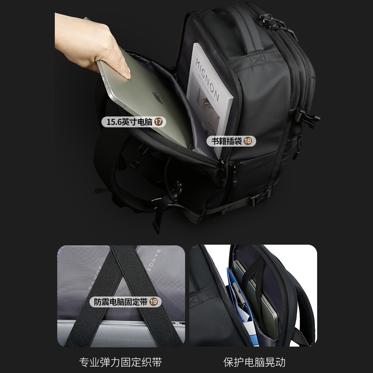 کولهپشتی مسافرتی لپتاپ 15.6 اینچ و آیپد 12.9 اینچ ضدآب و ضدسرقت 22 لیتری بنج Bange BG-7876 طرح چمدان