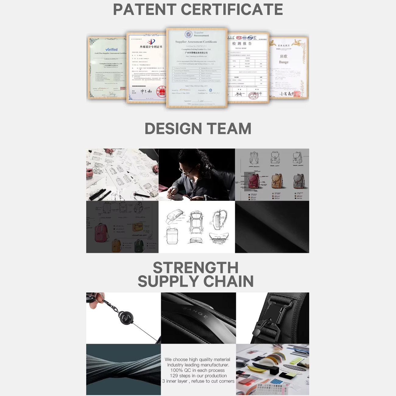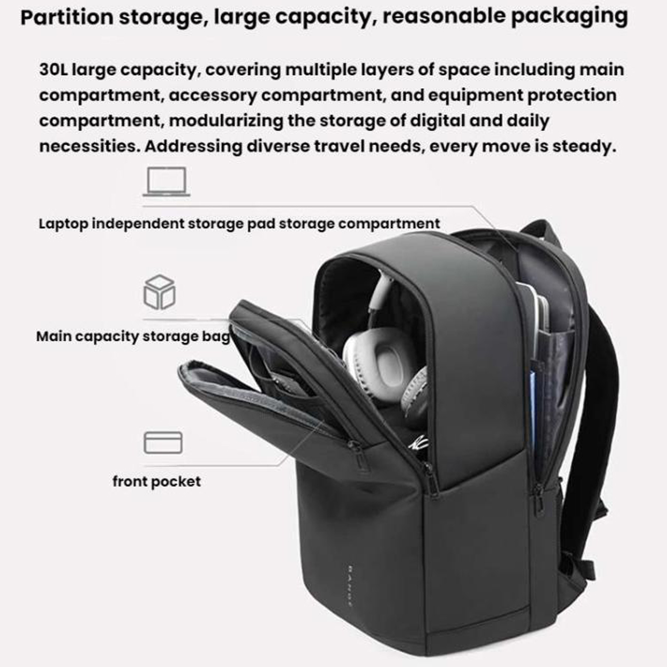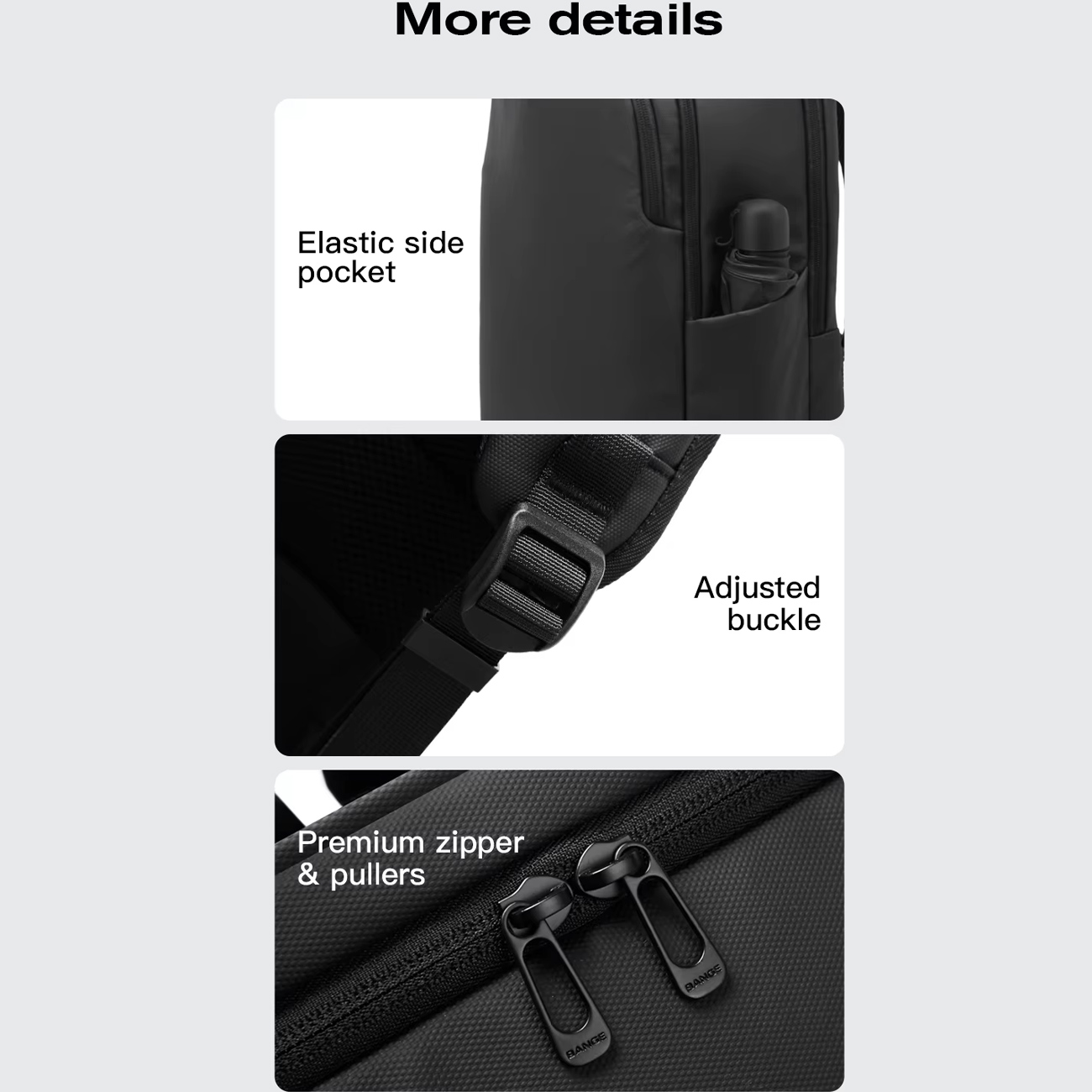 جزئیات کوچک، تفاوت بزرگ در کوله پشتی ایجاد میکنند. زیپهای دوطرفه با دندانهای فلزی صیقلی، باز و بسته شدن روان حتی با یک دست را ممکن میسازند و کشش نرم، از گیرکردن پارچه جلوگیری میکند. قفلهای پلاستیکی ABS با قابلیت تنظیم 10 مرحلهای، بندها را دقیقاً در موقعیت دلخواه ثابت نگه میدارند. جیبهای داخلی مخفی برای پاسپورت یا کیف پول، دسترسی سریع بدون باز کردن محفظه اصلی را فراهم میکنند. الگوی ژاکارد ظریف روی سطح خارجی، ظاهری حرفهای بدون شلوغی ایجاد میکند و لوگوی برجسته BANGE، اصالت محصول را تأیید مینماید. جیب جلویی با سازماندهنده داخلی، 12 اسلات برای کارت، خودکار و فلش مموری دارد و همه چیز را در دسترس نگه میدارد. این جزئیات، عملکرد روزانه را به سطحی بالاتر ارتقا میدهند.