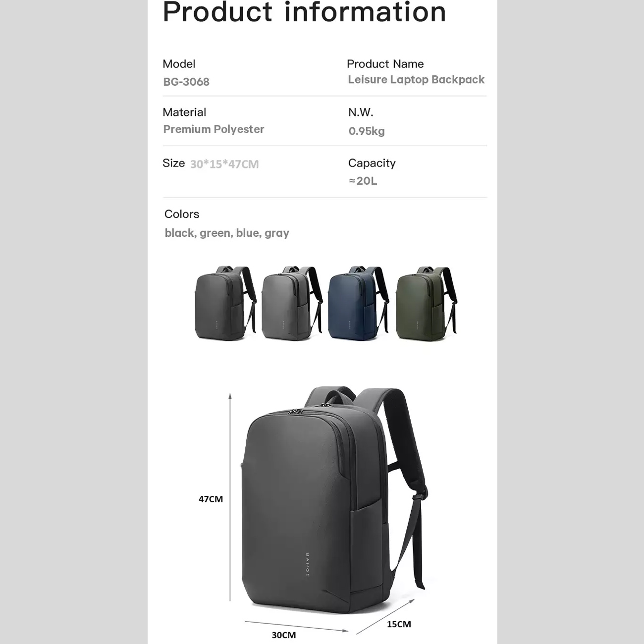 کوله پشتی کاربری روزمره BANGE BG-3068، بیش از یک وسیله حمل، بخشی از استراتژی موفقیت روزانه است. با ادغام امنیت، سازماندهی و راحتی، روتینهای کاری و سفر را بهینه میکند. برای ارتقای سطح مدیریت تجهیزات و لوازم شخصی، همین حالا کوله پشتی لپ تاپ مردانه بنج را از جانبی به سبد خرید اضافه کنید و از تفاوت واقعی در روزهای پرمشغله لذت ببرید .