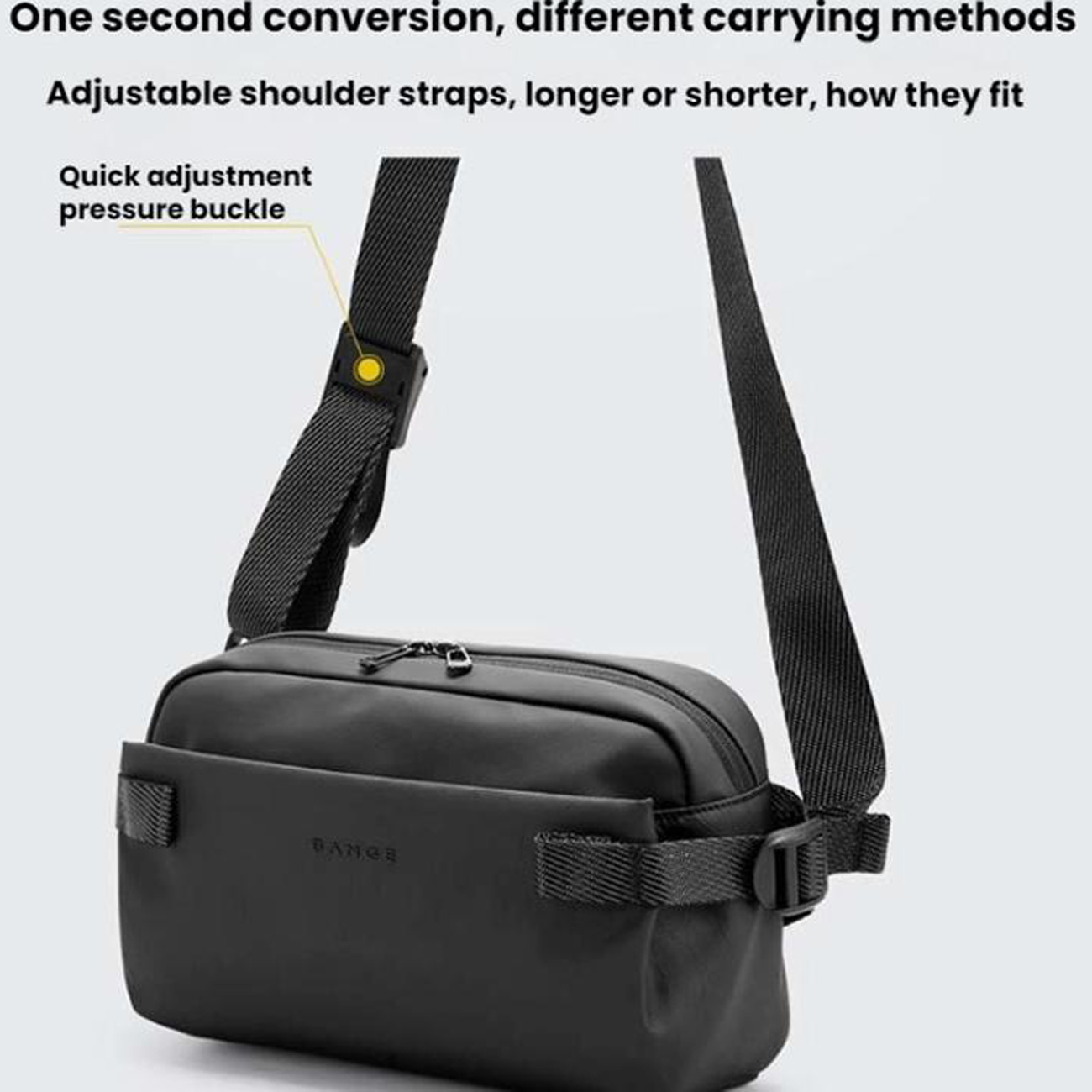 بند کیف کراسبادی بنج قابلیت تنظیم سریع و آسان دارد و به شما امکان میدهد کیف را به صورت کمری یا روی شانه استفاده کنید. قفل سریع Quick‑adjust buckle، تغییر طول بند را تنها با یک دست ممکن میکند و سازگاری با فرم بدن و شرایط حمل را به حداکثر میرساند. این طراحی برای استفاده در محیطهای شهری، پیادهروی، حمل وسایل در مترو یا سفرهای کوتاه ایدهآل است. راحتی در تنظیم و انعطافپذیری حمل، فشار روی شانه و کمر را کاهش میدهد و تجربهای بیدغدغه از همراهی کیف فراهم میکند. به این ترتیب، شما میتوانید تمرکزتان را بر روی مقصد یا کار خود بگذارید، نه روی نحوه حمل وسایل.