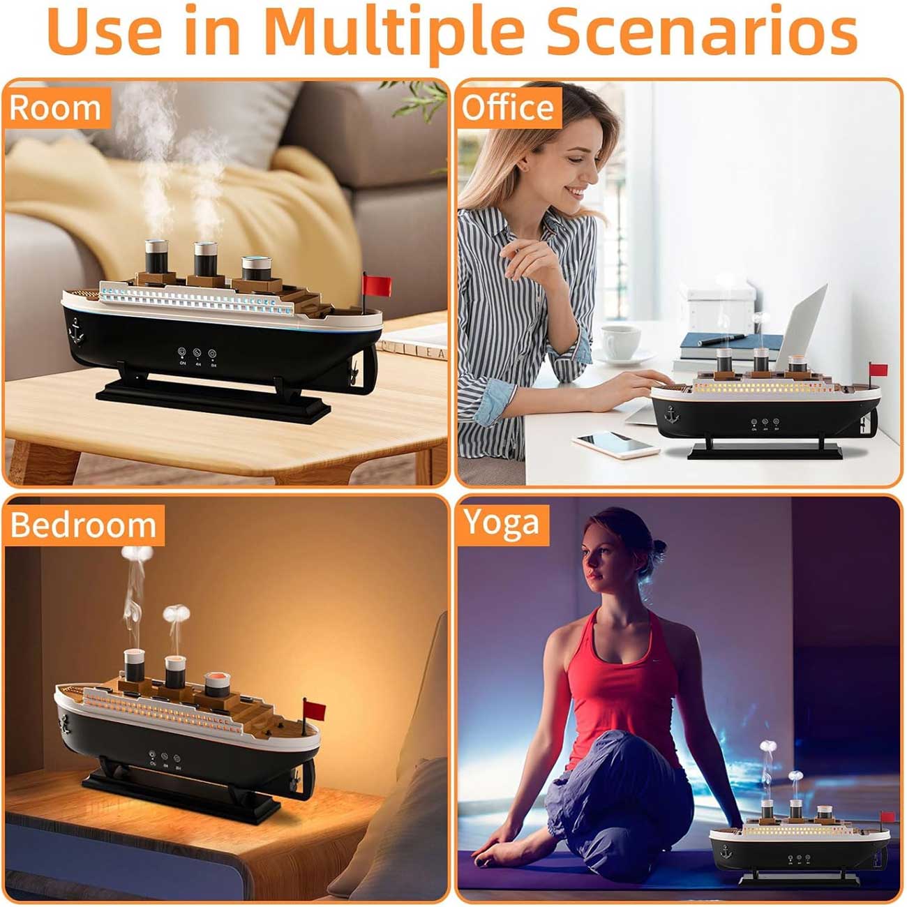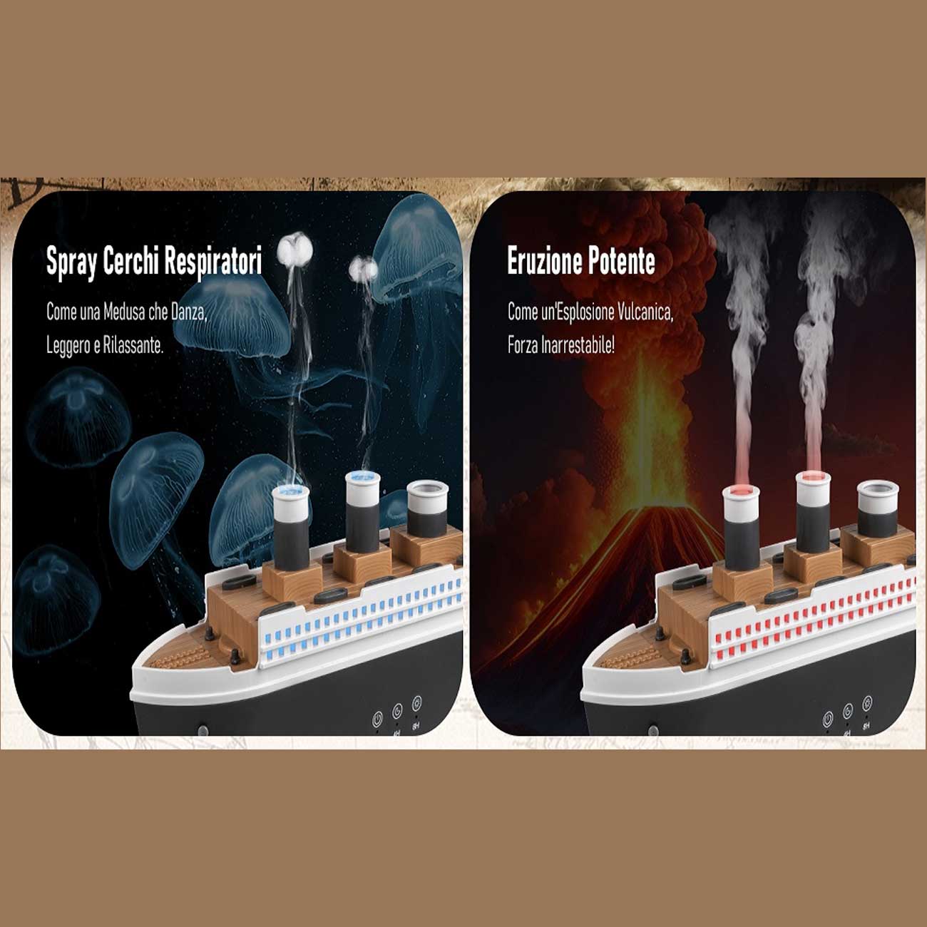 طراحی صنعتی و خلاقانه این دستگاه بخور سرد طرح کشتی تایتانیک با الهام از کشتی افسانهای تایتانیک، آن را به یک قطعه دکوری خاص تبدیل کرده است. بدنهای شبیه به کشتی با نورهای رنگی و بخارهای شبیه به دودکشها، حس واقعی حرکت کشتی را القا میکند و فضا را از حالت یکنواخت خارج میسازد. آیا تاکنون وسیلهای را دیدهاید که هم عملکردی باشد و هم شبیه یک مجسمه هنری عمل کند؟