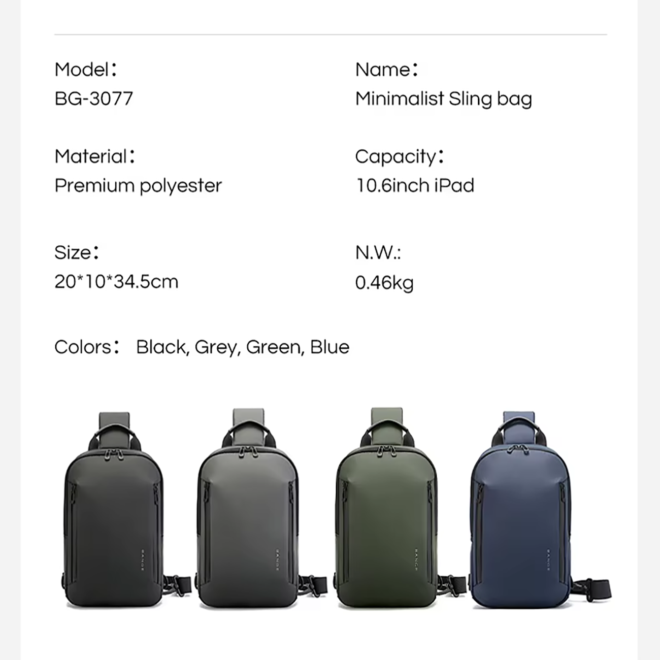 حالا تصور کنید این تجربه دلنشین حمل، با طراحی مدرن و امکانات حرفهای ترکیب شود؛ اینجاست که کیف کراسبادی ضدآب بنج BANGE BG-3077 وارد صحنه میشود. این محصول با استفاده از پارچه آکسفورد ضدآب، پلیاستر با دوام و ساختار ضد خش طراحی شده تا در هر شرایطی از وسایل شما محافظت کند. حجم 9 لیتری آن برای حمل آیپد 10.6 اینچی، دفتر، پاوربانک، کیف پول، گوشی و لوازم ضروری روزمره کاملاً ایدهآل است.