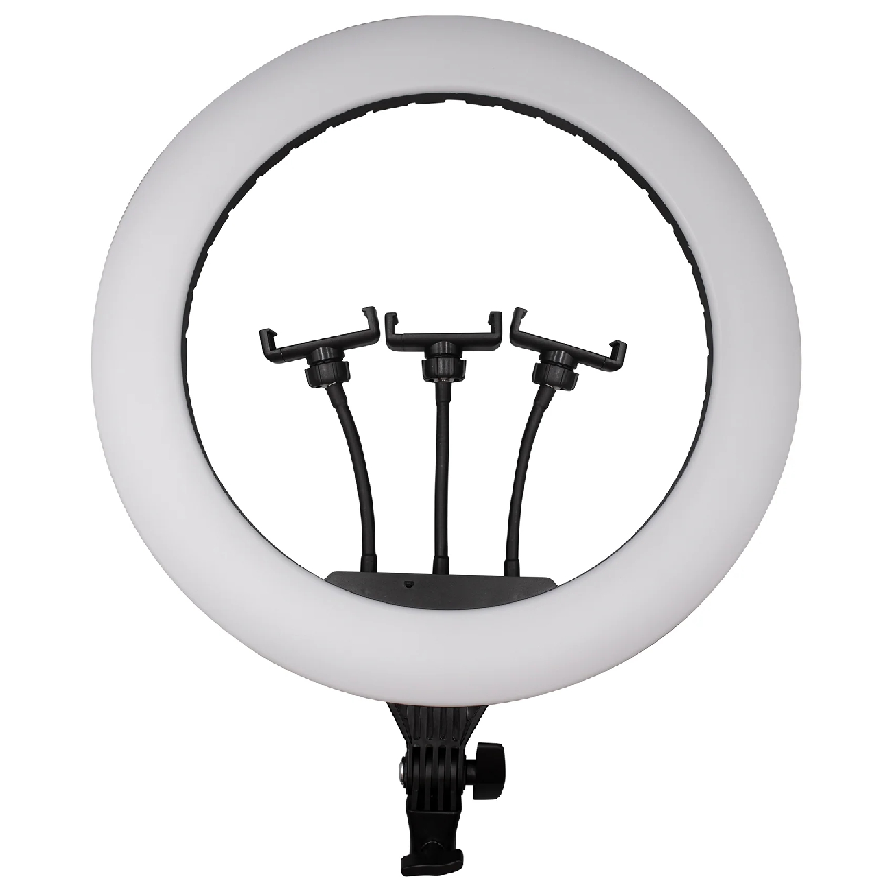رینگ لایت سه پایهدار Green Lion GNRNGLIT14 با داشتن 3 جایگاه هولدر موبایل، امکان فیلمبرداری و گرفتن سلفی را برای شما فراهم میکند. این هولدرها به گونهای طراحی شدهاند که گوشی شما را به صورت امن نگه میدارند و از آسیب رسیدن به آن جلوگیری میکنند. این پایههای نگهدارنده با داشتن پد سیلیکونی، محافظت بیشتری برای گوشی شما فراهم میکنند و از سرخوردن گوشی جلوگیری میکنند. با استفاده از این سه هولدر، شما میتوانید همزمان از سه گوشی در هر جهتی که بخواهید، آزادانه فیلمبرداری کنید یا فقط از یک هولدر استفاده کنید. این ویژگی، رینگ لایت گرین لاین را یک ابزار بسیار کاربردی برای عکاسان و فیلمبرداران میکند.