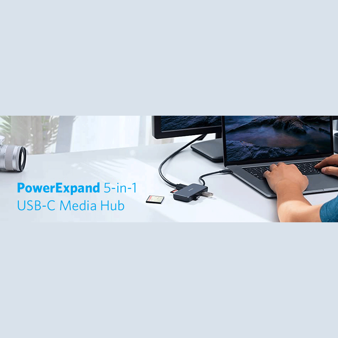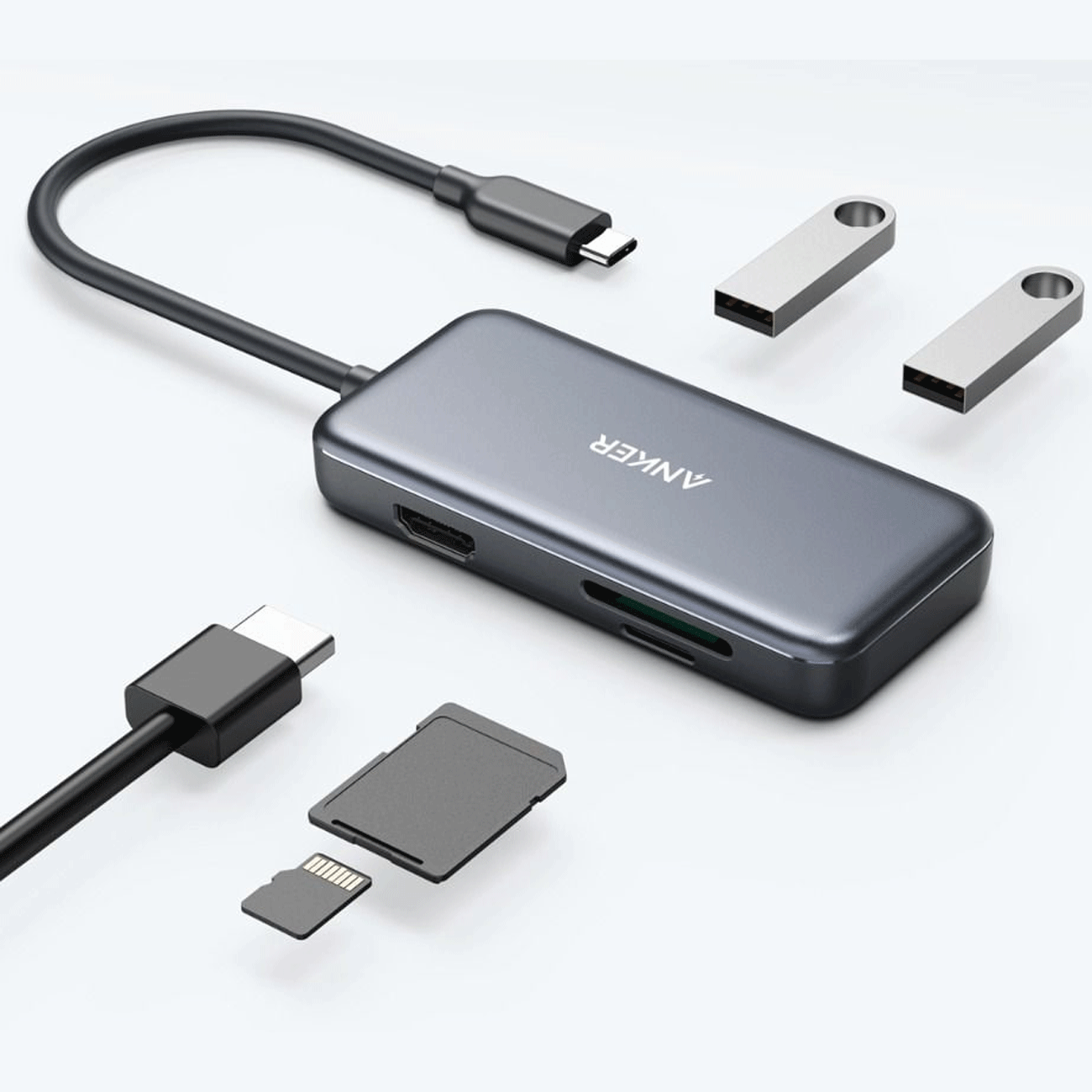 آداپتور با 5 درگاه و کانکتور تایپ سی انکر مدل A8334HA1