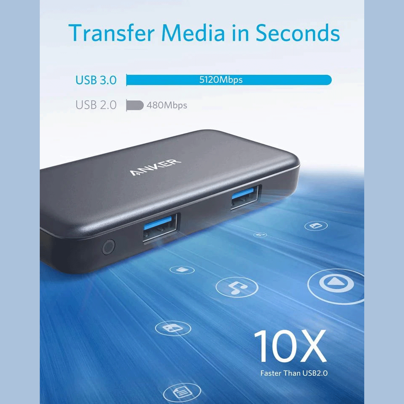با پورتهای USB 3.0، این هاب امکان انتقال دادهها را با سرعت 5 گیگابیت بر ثانیه فراهم میکند. این یعنی میتوانید فیلمها، موسیقیها و فایلهای حجیم خود را در چند ثانیه جابجا کنید و در وقت خود صرفهجویی نمایید.