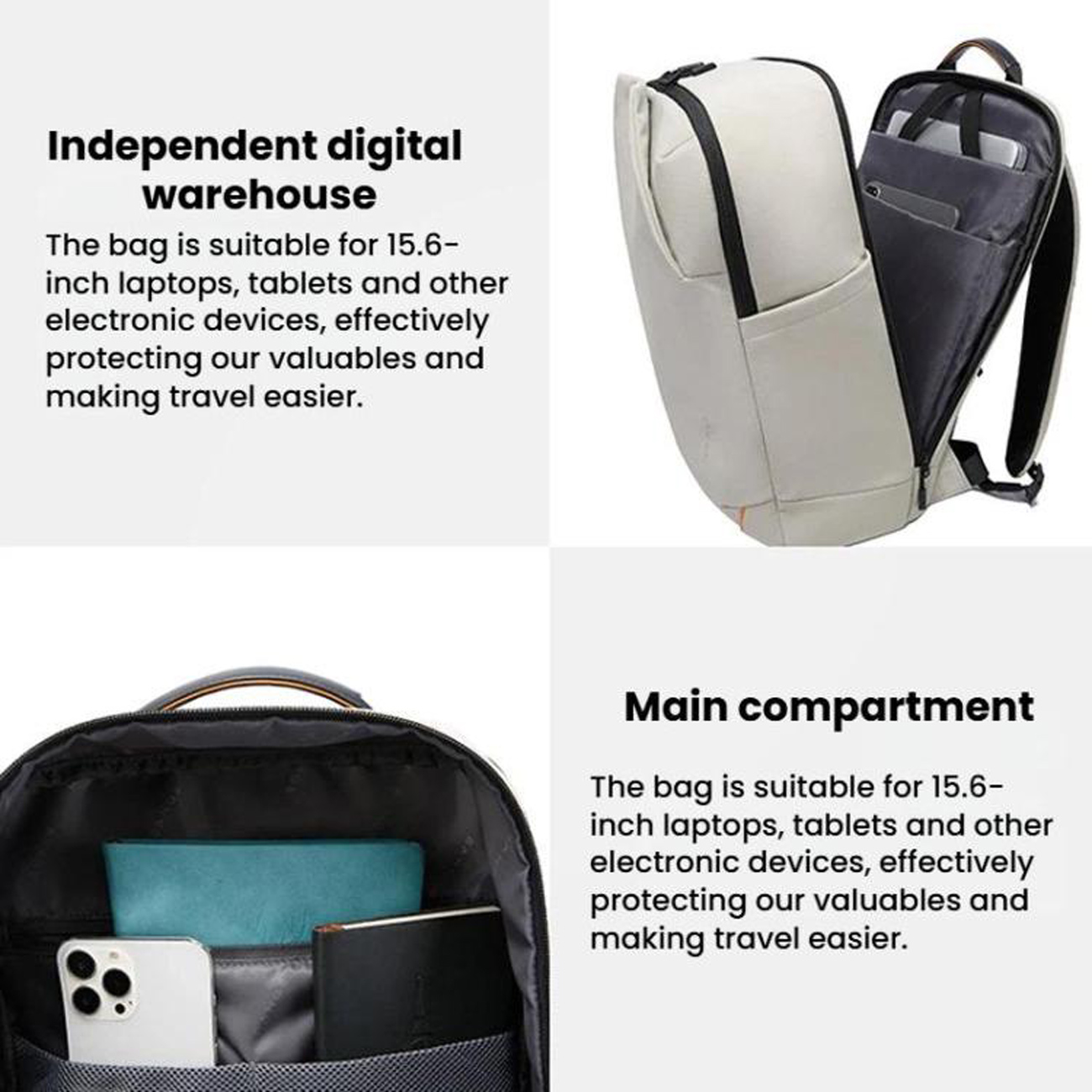کوله سفری بنج مجهز به محفظه اختصاصی برای لپتاپ تا اندازه 15.6 اینچ و تبلت است که از دستگاههای الکترونیکی شما در برابر ضربه و خط و خش محافظت میکند. این قابلیت مخصوصاً برای کاربرانی که نیاز به حمل وسایل دیجیتال دارند، اهمیت بالایی دارد و امنیت کامل تجهیزات ارزشمند شما را تضمین میکند. علاوه بر این، کیفکولی دارای جیبهای جداگانه برای وسایل کوچک، لوازم شخصی و اکسسوریهای دیجیتال است تا هر چیز سر جای خود باقی بماند و دسترسی سریع امکانپذیر باشد.