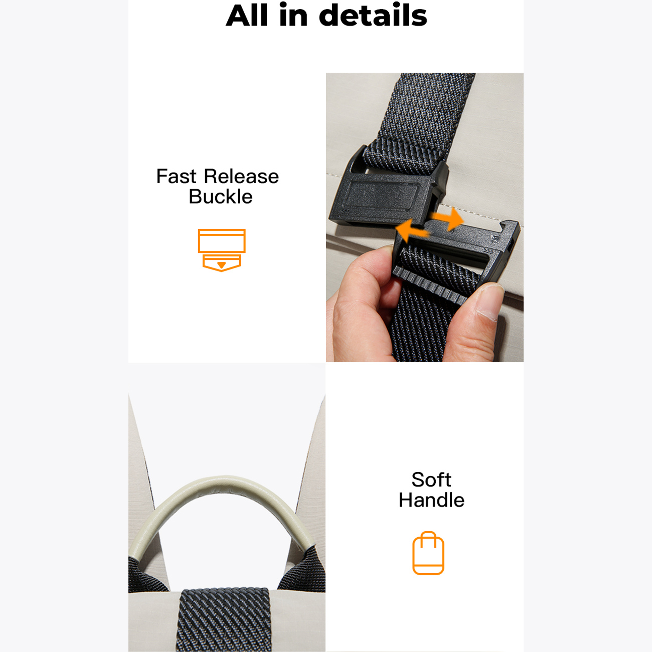 | زیپ و سگک آزادشونده سریع | دسته نرم با بالشتک |