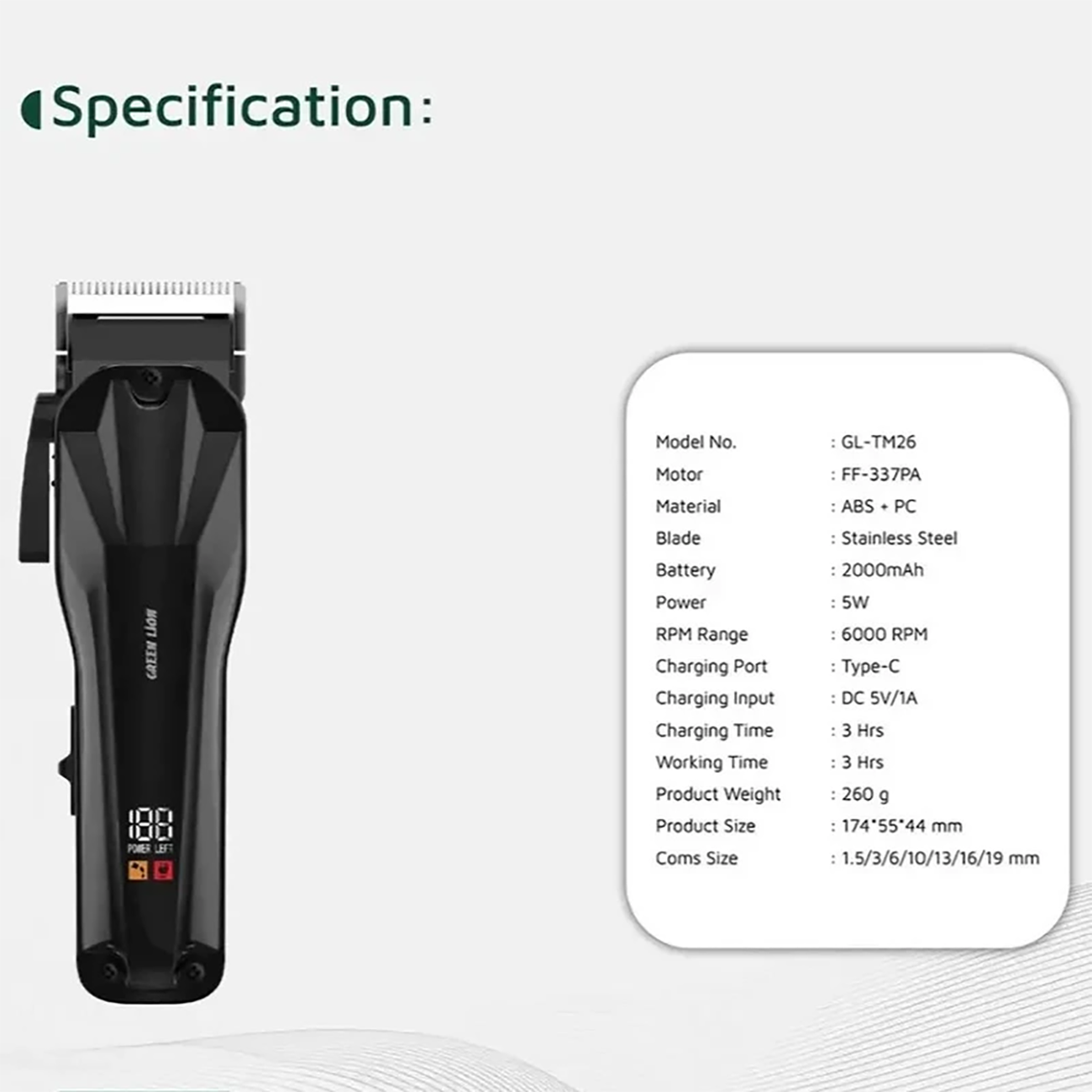 ماشین اصلاح شارژی گرین لاین Green Lion اصل مدل GL-TM26 حرفه ای