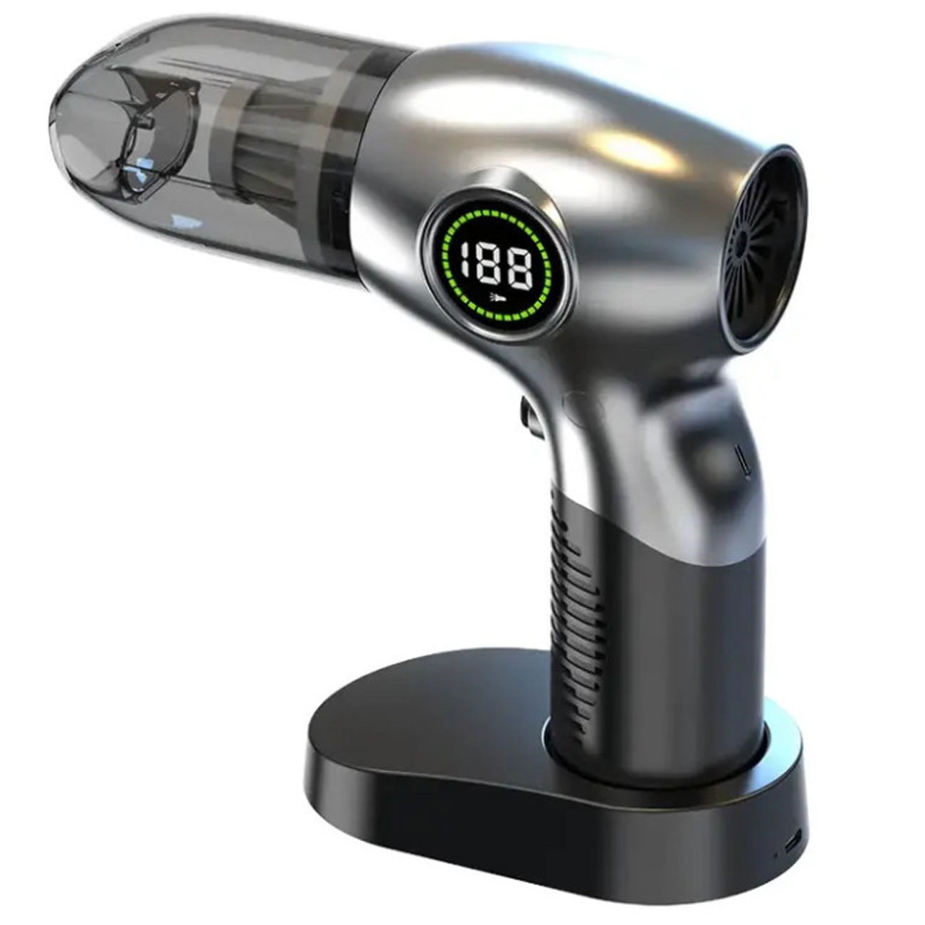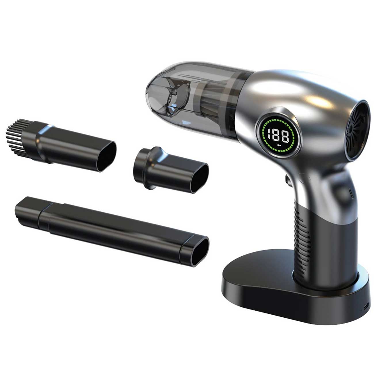 با ابعاد 100 × 180 × 70 میلیمتر و وزن 382 گرم، GB-196X به راحتی در کیف یا داشبورد خودرو جای میگیرد. جنس ABS + PC مقاومت در برابر ضربه و حرارت را تضمین کرده و رنگ نقرهای ظاهری شیک و مدرن به آن بخشیده است. طراحی ارگونومیک دسته، خستگی را در استفاده طولانی کاهش میدهد و حملپذیری بالا، آن را برای استفاده در خانه، محل کار یا سفر ایدهآل میکند.طراحی ارگونومیک جارو شارژی گرینلاین GB-196X تجربه کاربری را بهبود بخشیده و اطمینان خاطر را در استفاده روزمره تقویت میکند.