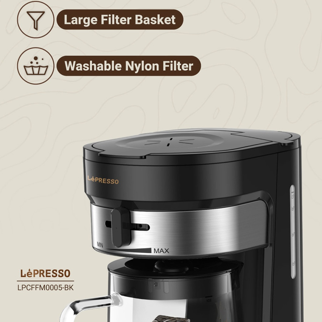 سبد فیلتر بزرگ و فیلتر نایلونی قابل شستشو، تمیزکاری راحت و استفاده طولانیمدت را امکانپذیر میکند. این ویژگی باعث میشود هر بار دمکردن نوشیدنی، طعم بهینه حفظ شود و تجربهای بهداشتی و بدون دردسر داشته باشید. قابلیت استفاده مجدد فیلتر، مقرونبهصرفه و کارآمد است.