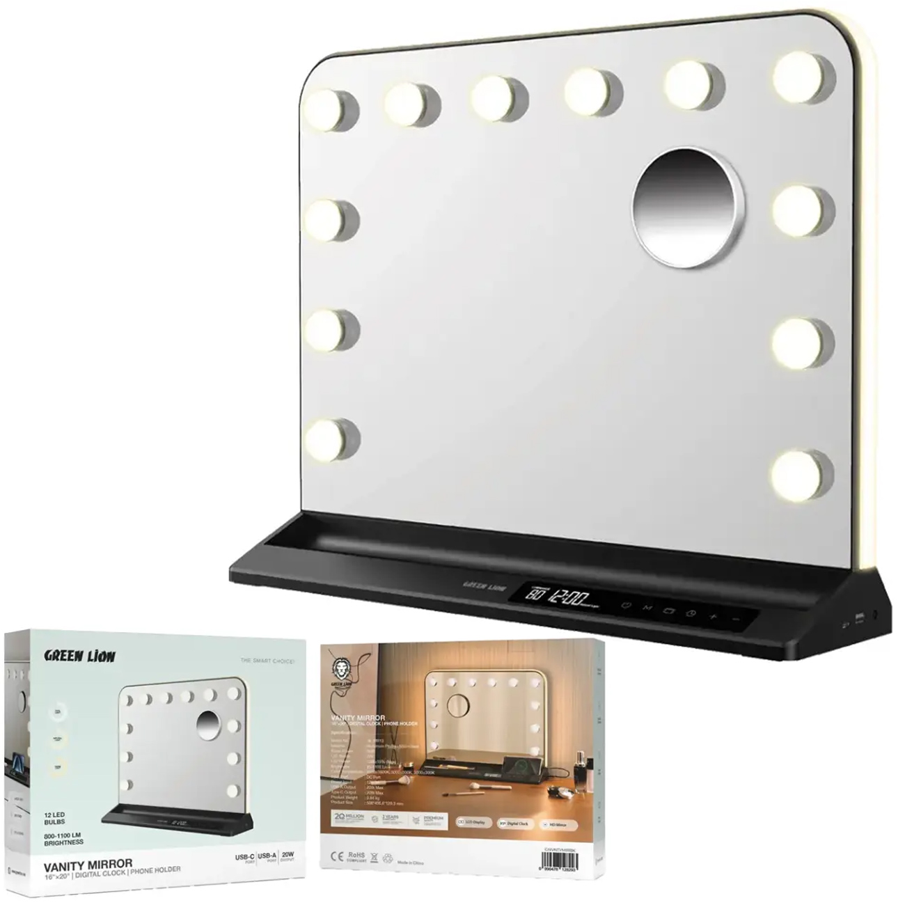 آینه آرایش رومیزی گرین لاین Green Lion اصل مدل GL-MR13 با 12 چراغ