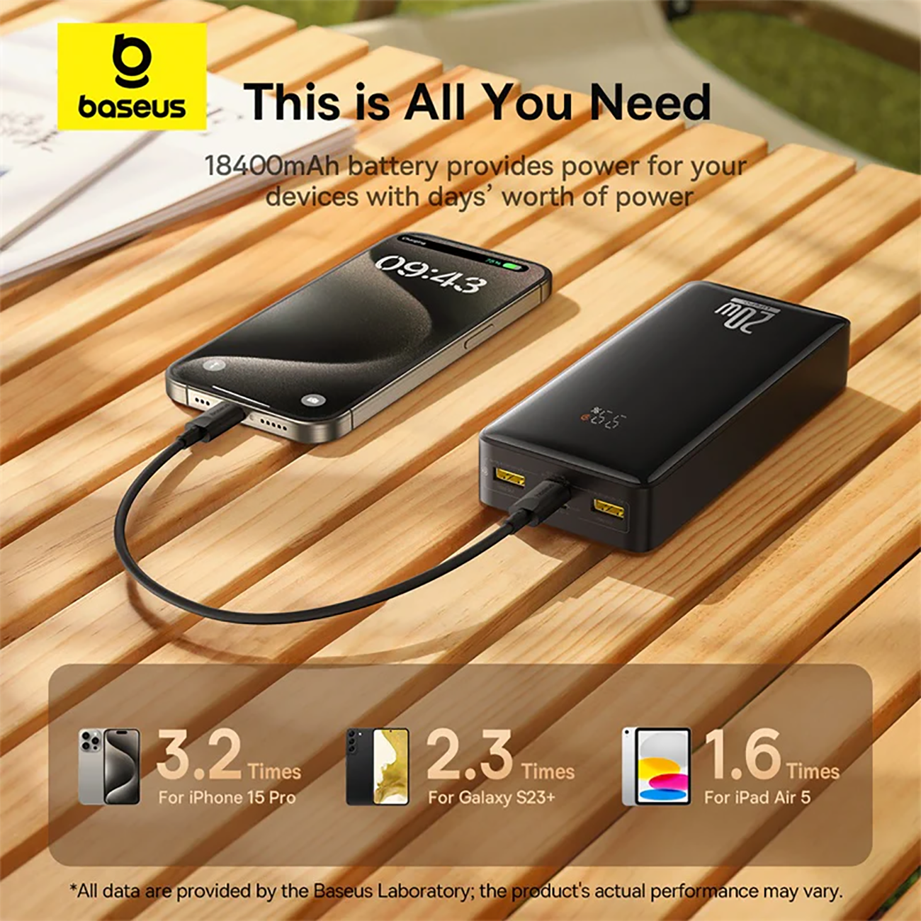 با وجود توان بالا و امکانات کامل، وزن حدود 423 گرم و ابعاد استاندارد این پاوربانک، حمل آن را در کیف یا کولهپشتی آسان کرده است. این ویژگی باعث میشود پاور بانک Baseus PPLP184 برای استفاده روزانه، سفر، محل کار و شرایط اضطراری انتخابی منطقی و کاربردی باشد.