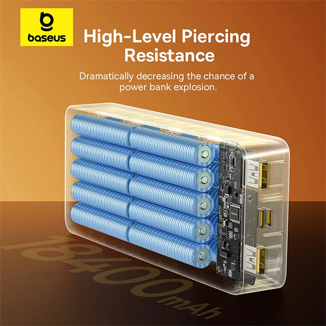 بدنه شارژر همراه بیسوس از پلاستیک ABS و پلیکربنات نسوز ساخته شده که مقاومت بالایی در برابر ضربه، سایش و تعریق دارد. طراحی ارگونومیک و ضد لغزش، باعث میشود پاوربانک بهراحتی در دست قرار بگیرد و هنگام استفاده یا حمل، کنترل مناسبی داشته باشد. این طراحی مقاوم، پاوربانک را برای استفاده در محیطهای بیرونی نیز مناسب کرده است.