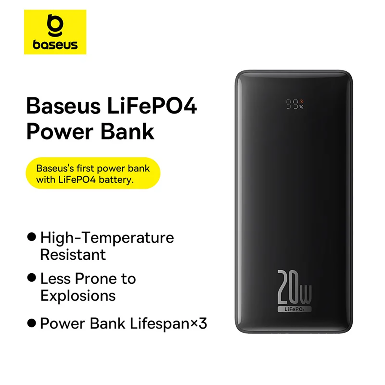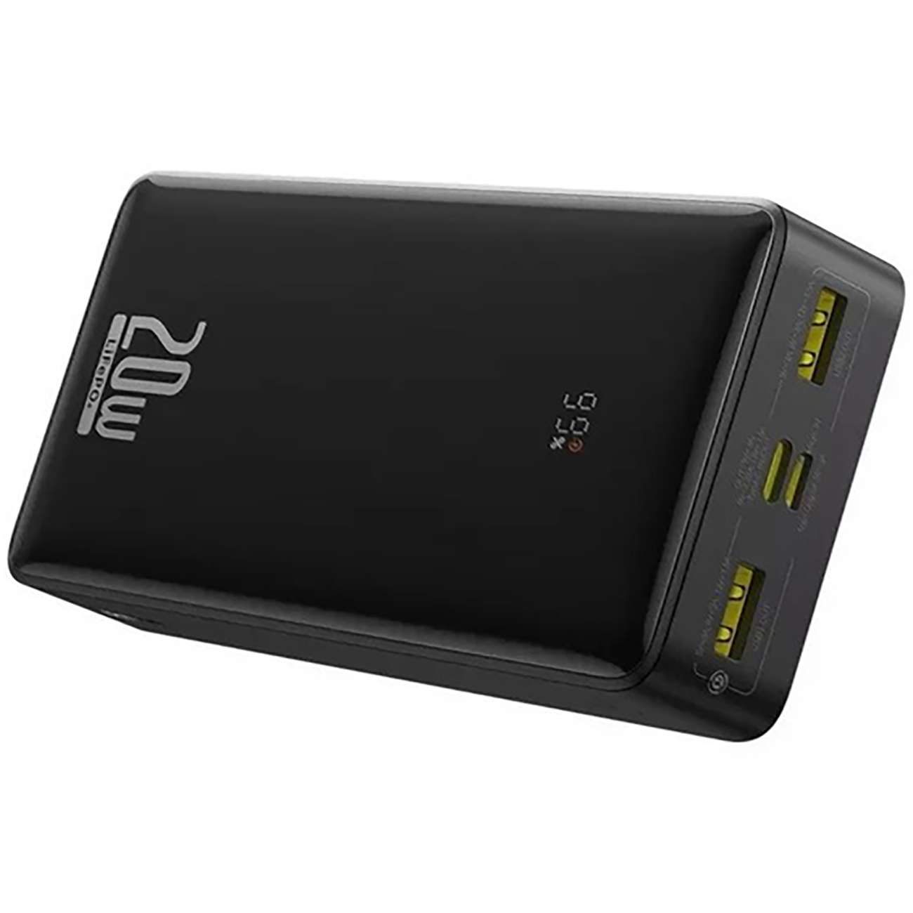 پاور بانک باسئوس PPLP184 با ظرفیت اسمی 20000 میلیآمپر ساعت و ظرفیت واقعی حدود 12000 میلیآمپر ساعت، توان خروجی حداکثر 20 وات را ارائه میدهد. این پاوربانک به سه درگاه خروجی USB-A و USB-C مجهز شده و با تراشه هوشمند کنترل ولتاژ، شارژی ایمن و پایدار را تضمین میکند.
