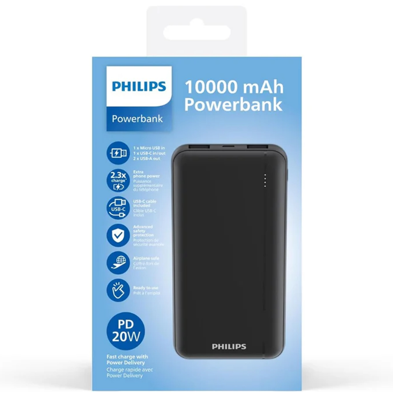 پورت Type-C پاور بانک فیلیپس بهصورت ورودی و خروجی عمل میکند و از شارژ سریع 20 وات پشتیبانی میکند. این قابلیت دستگاههای سازگار با PD مانند آیفون سری 15/16 و گوشیهای گلکسی جدید را با سرعت بالا شارژ میکند. علاوه بر این، USB-C امکان شارژ سریع خود پاوربانک را نیز فراهم میکند تا در کمترین زمان آماده استفاده باشد.