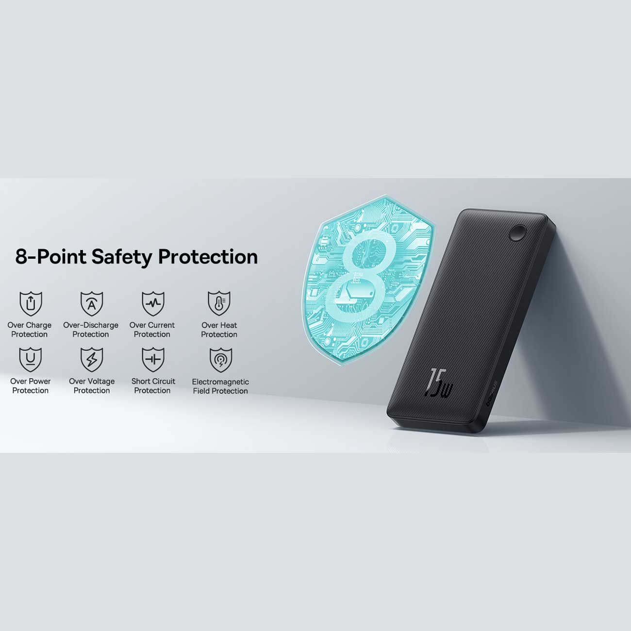 وجود دو پورت خروجی Type-C و USB-A، امکان شارژ همزمان دو دستگاه را فراهم میکند. فناوری Baseus BPS II در این باتری همراه به بهینهسازی جریان شارژ کمک کرده و تعادل توان را بین دستگاهها حفظ میکند تا سرعت شارژ کاهش نیابد و ایمنی دستگاهها تضمین شود.