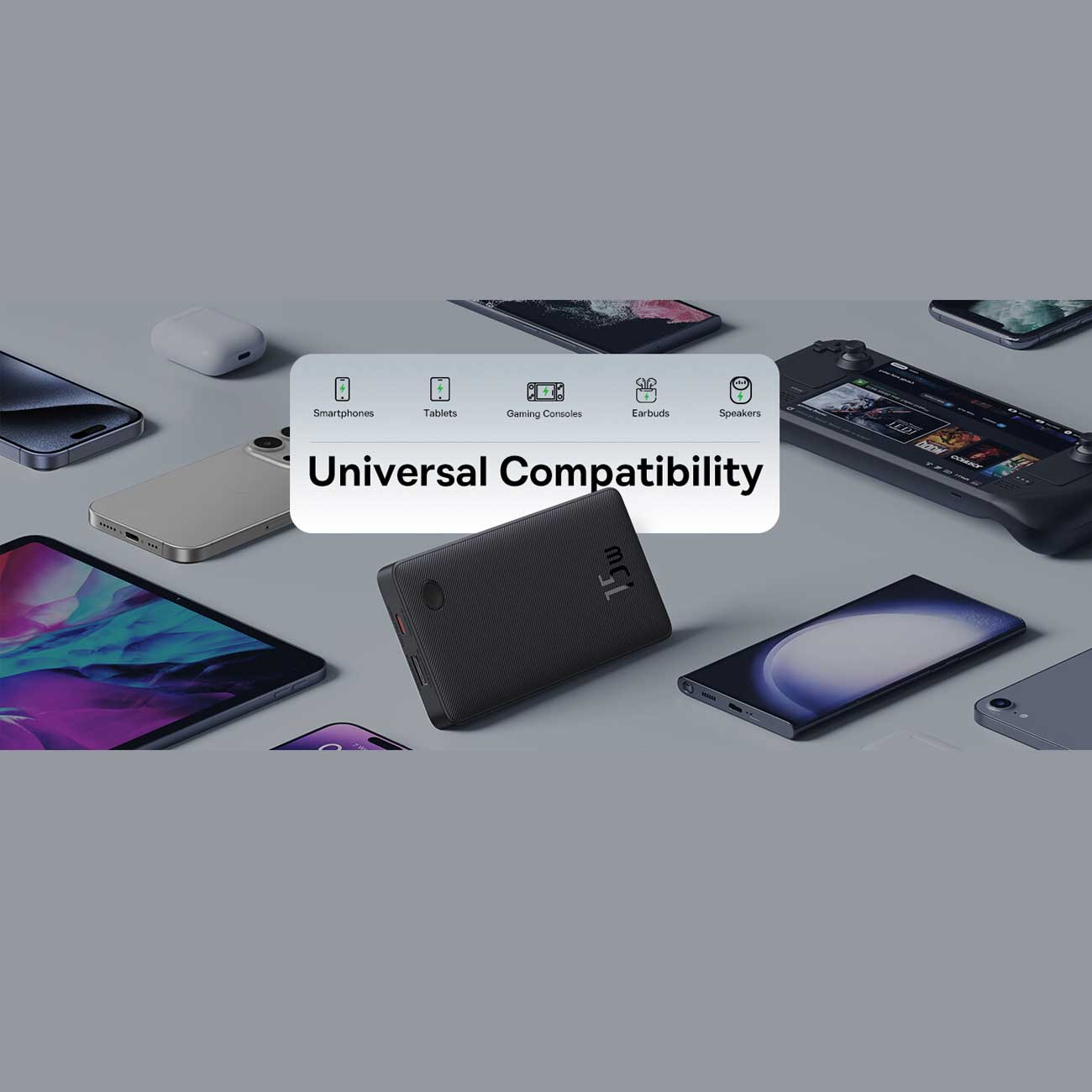وزن کم و ضخامت بسیار پایین شارژر همراه Baseus Airpow Lite آن را به یک همراه ایدهآل برای حمل در کیف، کولهپشتی و حتی جیب تبدیل کرده است. ابعاد جمعوجور این پاور بانک، بدون فدا کردن ظرفیت باتری، راحتی استفاده در هر مکان و زمان را فراهم میکند.