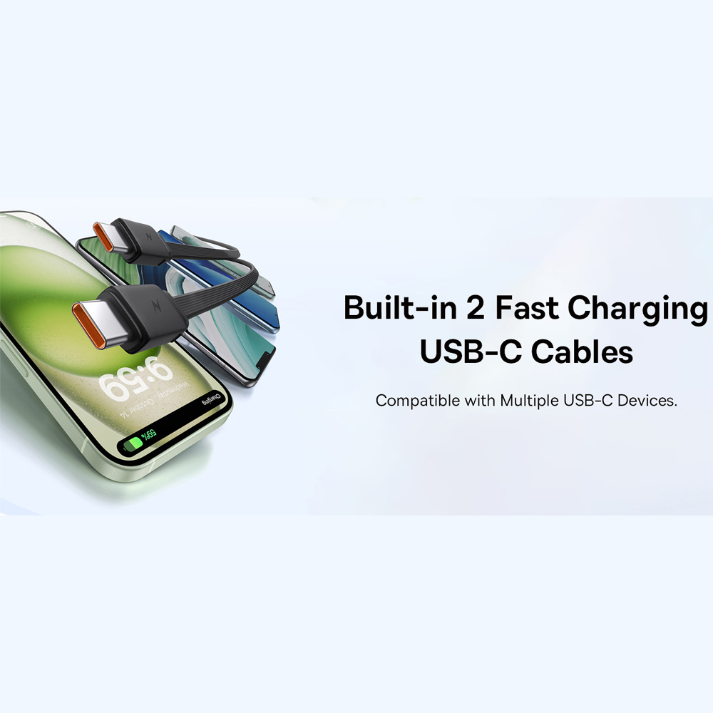 شارژر همراه بیسوس مجهز به یک پورت تایپسی و یک درگاه USB-A و دو کابل تایپسی است که اجازه میدهد تا چهار دستگاه به طور همزمان شارژ شوند. این قابلیت برای کسانی که چند دستگاه هوشمند دارند، بسیار مفید است و نیاز به شارژ جداگانه دستگاهها را از بین میبرد. شارژ چندگانه باعث صرفهجویی در زمان و افزایش کارایی میشود. همچنین، کابلهای داخلی USB-C تعبیه شده در پاوربانک، کار با آن را بسیار ساده و سریع کرده است. این ویژگی پاوربانک را به گزینهای ایدهآل برای کاربران پرمشغله تبدیل میکند.