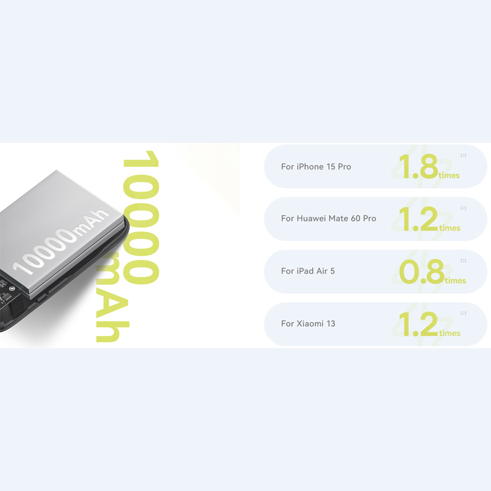 پاوربانک Baseus QPow2 با ظرفیت 10000 میلی آمپر ساعت، گزینهای ایدهآل برای شارژ مکرر گوشی و تبلت در طول روز است. این شارژر همراه به کمک باتری لیتیوم پلیمری خود، انرژی کافی برای چندین بار شارژ کامل دستگاههای شما را فراهم میکند. طراحی جمعوجور و وزن سبک آن، حمل و نقل را بسیار آسان کرده است. اگر به دنبال یک پاوربانک با ظرفیت بالا و کیفیت ساخت عالی هستید، Baseus QPow2 بهترین انتخاب شما خواهد بود. این محصول به خصوص برای سفر و استفاده روزمره مناسب است.