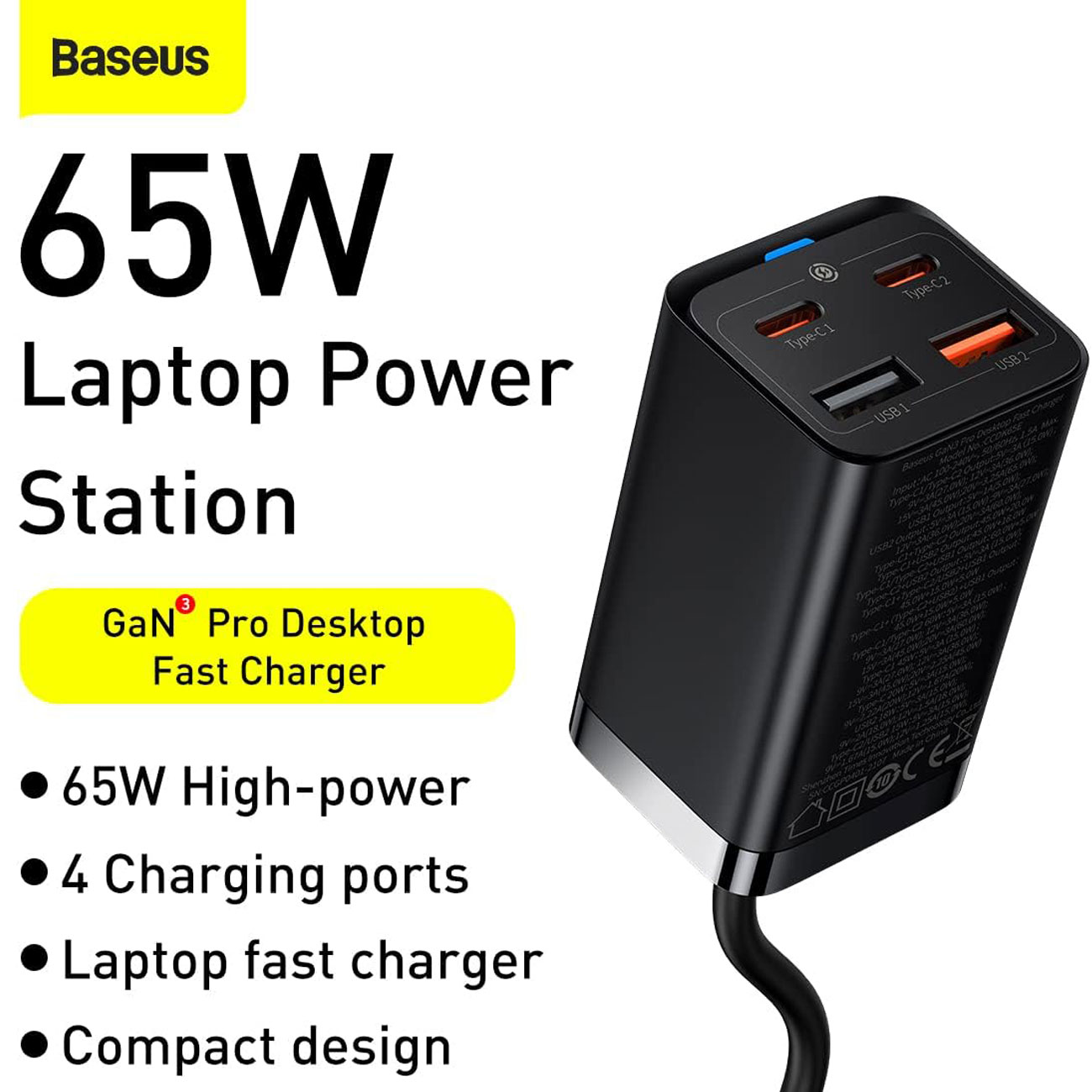 شارژر رومیزی فست 2 تایپسی و 2 یواسبی 65 وات بیسوس GaN3 Pro