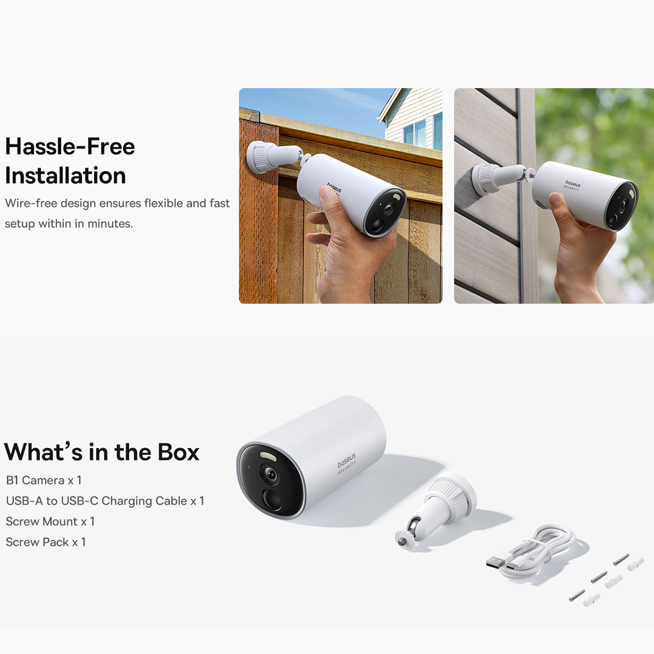 | محتوی جعبه | دوربین B1، کابل شارژ USB-A به USB-C، پایه نصب، پیچها و دفترچه راهنما |