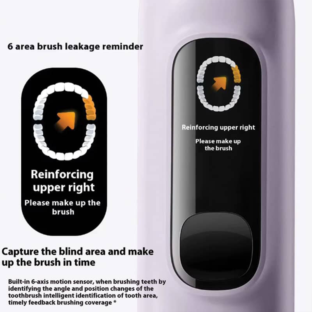 با وجود حسگر 6 محوره، این مسواک شارژی میتواند حرکت و زاویه دست شما را بررسی کند و مطمئن شود هیچ بخشی از دهان فراموش نشده است. در واقع، هر بار مسواک زدن به یک تجربه آموزشی تبدیل میشود؛ چون به شما نشان میدهد در کدام ناحیه نیاز به دقت بیشتری دارید.