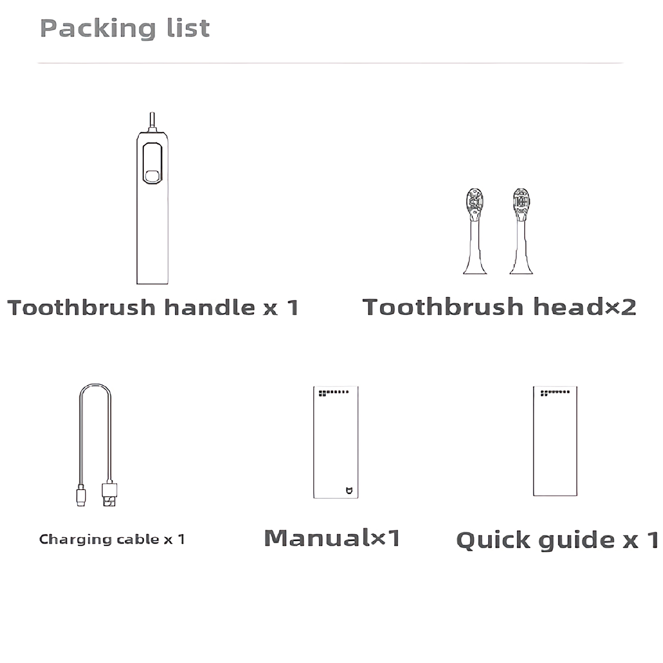 - محتویات بسته: بدنه مسواک، 2 سری، کابل شارژ Type-C، دفترچه راهنما