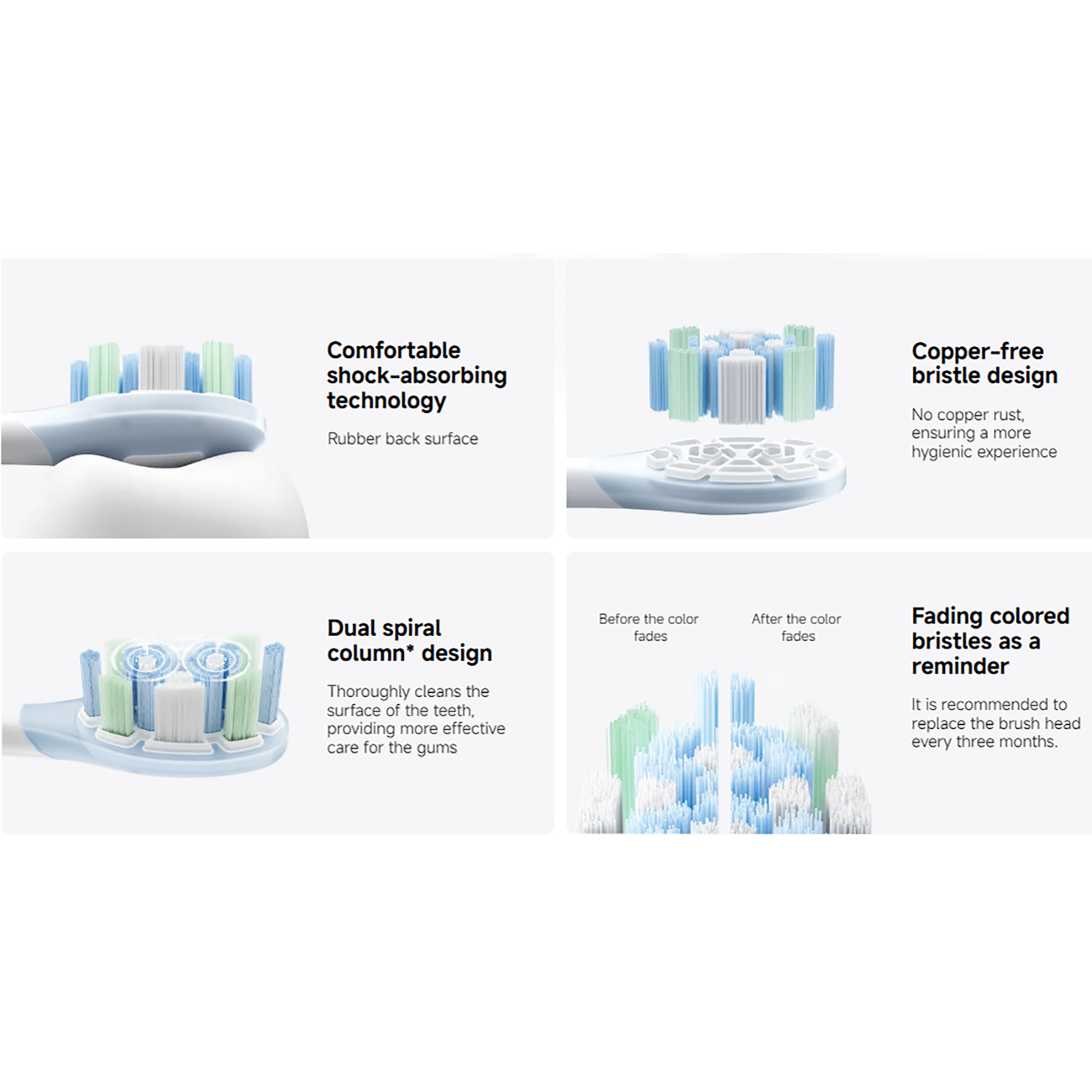 توصیه میشود برای عملکرد بهینه تمیز کردن، سر برس مسواک هر سه ماه یکبار تعویض گردد. در صورت نیاز میتوانید سری جداگانه برای مسواک خود تهیه نمایید.