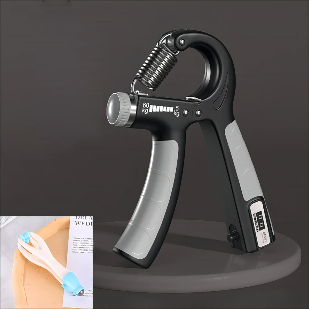 یکی از امکانات خاص این محصول وجود شمارنده دیجیتال در قسمت پایین دستگاه است که تعداد دفعات فشار را محاسبه و ثبت میکند. این قابلیت به شما کمک میکند روند تمرینات خود را کنترل کنید و بدون نیاز به شمارش دستی، میزان پیشرفتتان را بسنجید. هر زمان که خواستید، میتوانید شمارنده را ریست کرده و تمرین جدیدی را آغاز کنید.