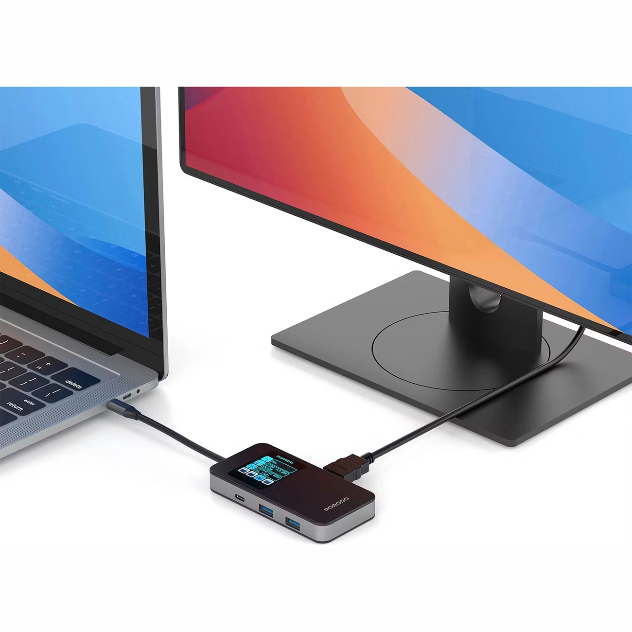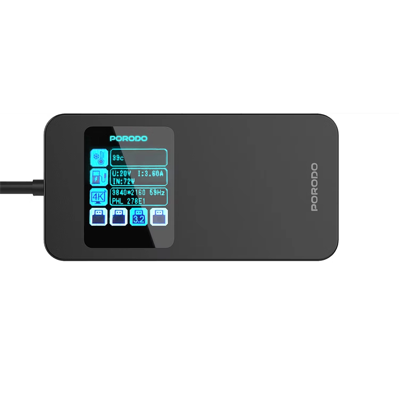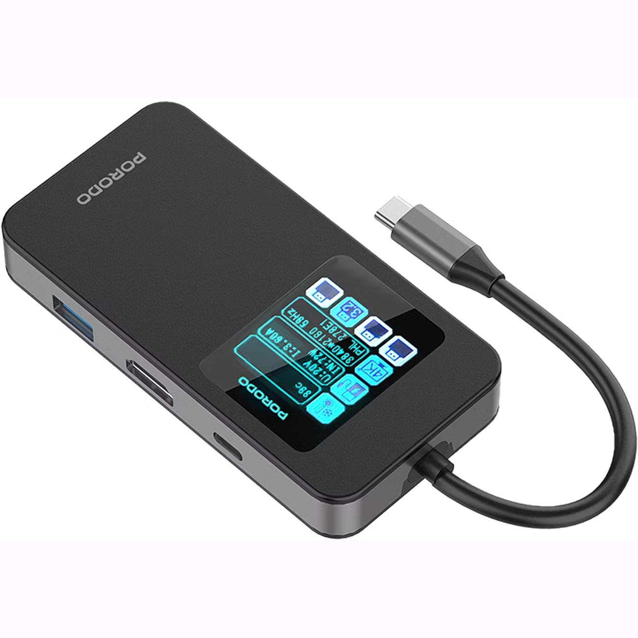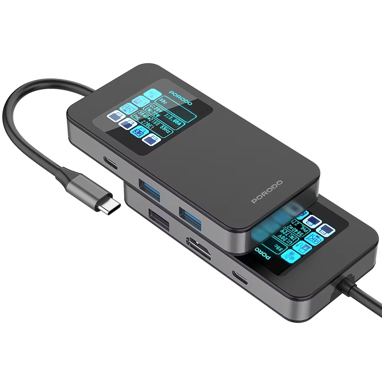 هاب تایپ سی 6 پورت پورودو Porodo مدل PDTC630GY با نمایشگر دیجیتالی