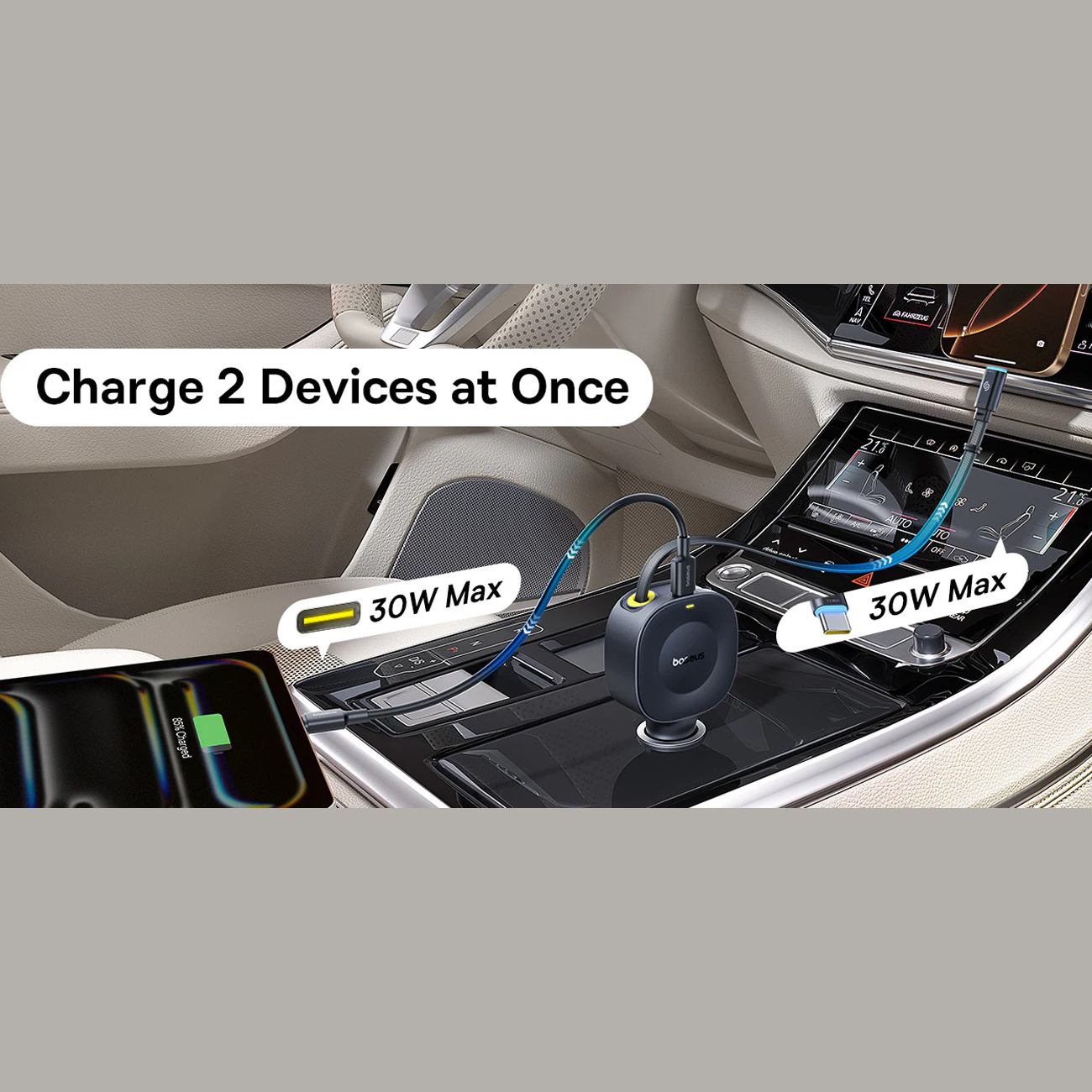 | کل خروجی (کابل + پورت) | تا ≈ 60W (۳۰W + ۳۰W) |