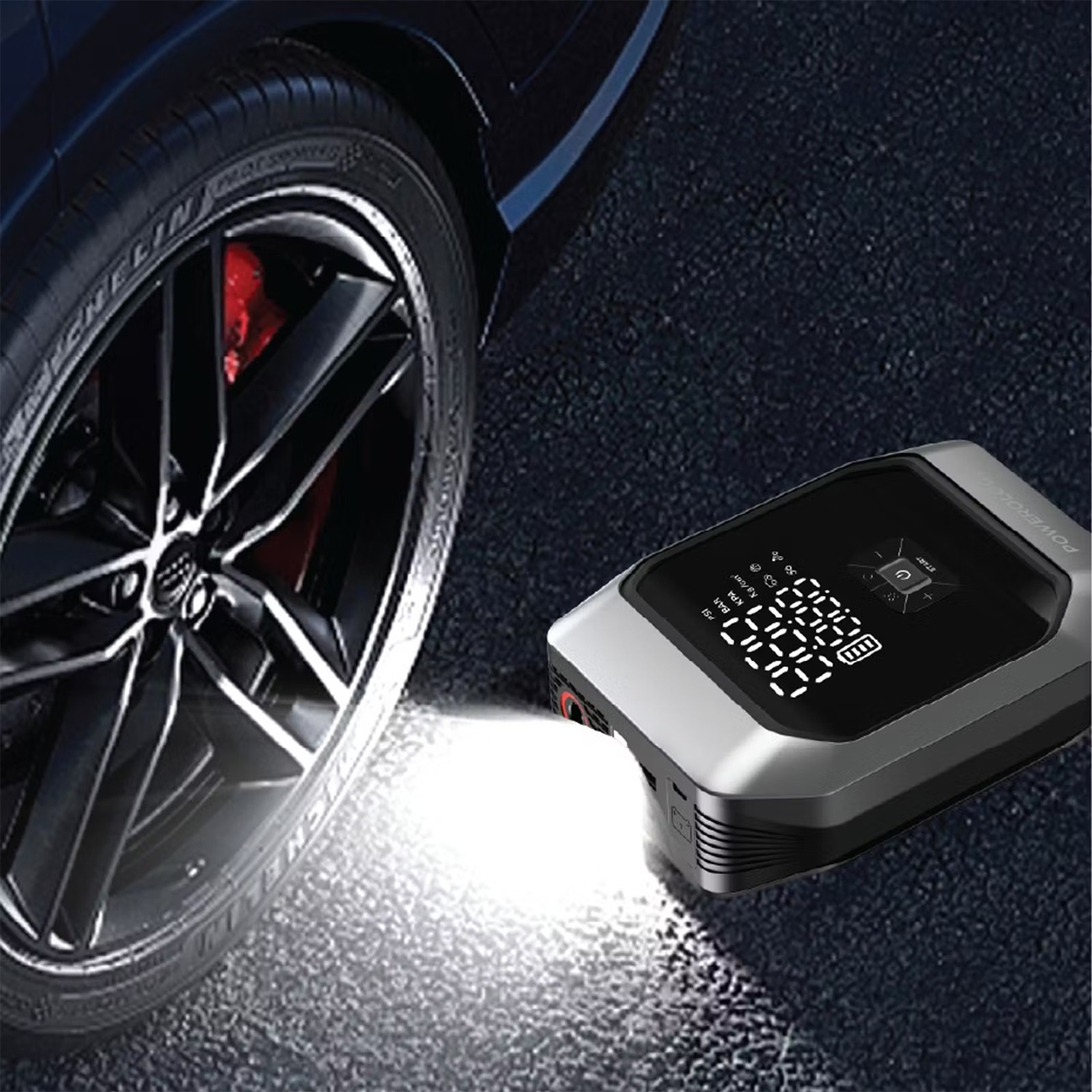 | کاربری بالا | جامپ استارت/ چراغ قوه LED/ عملکرد پاوربانک/ پمپ باد |