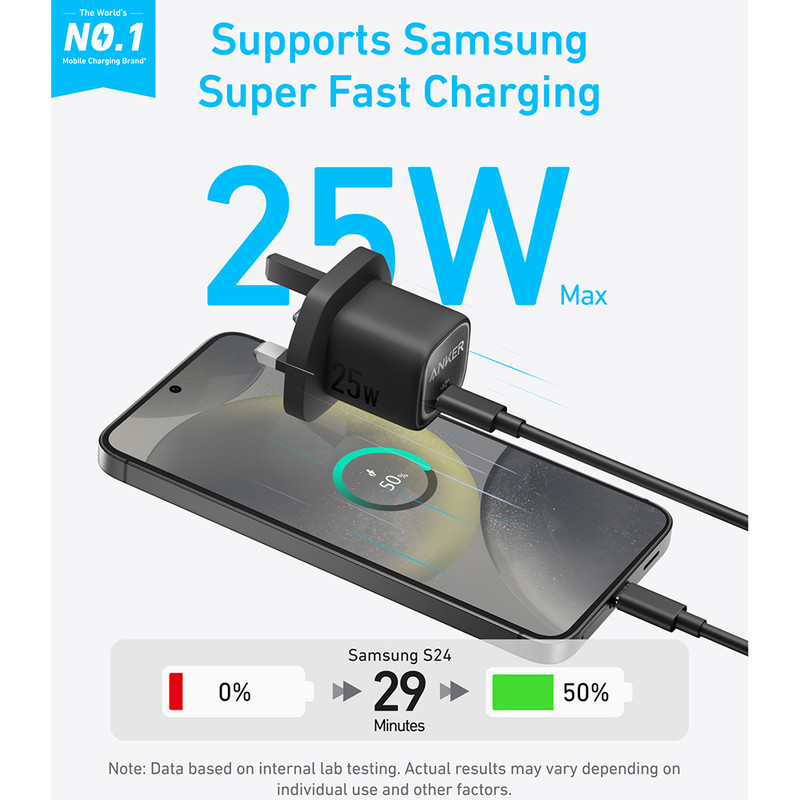 این شارژر 25 وات انکر با پشتیبانی از پروتکلهای شارژ سریع، میتواند بسیاری از گوشیهای جدید را با سرعت بالا شارژ کند. توان 25 وات برای کاربرانی که به شارژ سریع ولی پایدار نیاز دارند، نقطه تعادل بسیار خوبی بین سرعت و ایمنی ایجاد میکند.