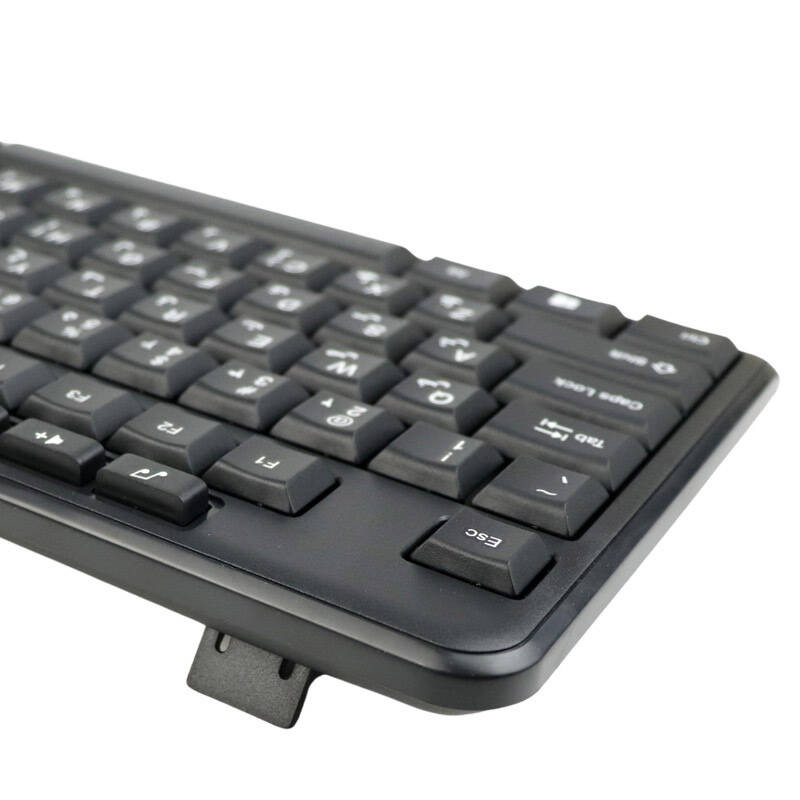 | سایر قابلیتهای صفحه کلید | اتصال باسیم از طریق رابط USB با کابل به طول 130 سانتی متر ساخته شده با روکش از جنس TPE مقاوم در برابر گره خوردگی و پارگیدارای پایه های تنظیم ارتفاع جهت سهولت در استفاده، برخورداری از نشانگر های LED جهت نمایش وضعیت کارکرد صفحه کلیدکیبورد ساخته شده از جنس پلاستیک ABS مقاوم در برابر فشار و ضربه با 113 عد کلید فیزیکی شامل کلید های مالتی مدیابرخورداری از حروف فارسی حک شده به صورت لیزری بر روی کلید های کیبورد، مقاوم در برابر نفوظ رطوبتدارای استاندارد های سلامت CE ، FCC ، ROHS |