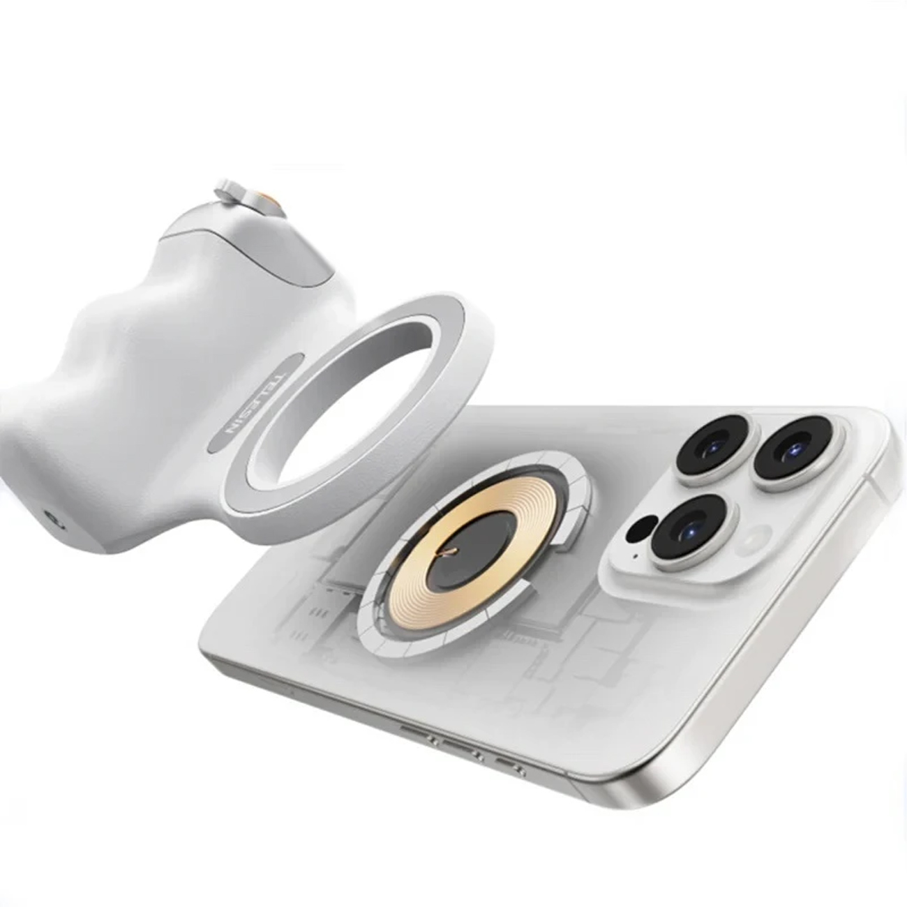 استفاده از آهنرباهای پرقدرت گریپ مغناطیسی عکاسی موبایل تلسین ، اتصال گوشی را در یک حرکت انجام میدهد و جداسازی هم بدون فشار اضافی صورت میگیرد. کاربران آیفون سری 12 به بعد میتوانند مستقیماً از MagSafe استفاده کنند و برای گوشیهای اندرویدی، حلقه مغناطیسی همراه محصول امکان سازگاری کامل را فراهم میکند. سطح تماس نرم، از ایجاد خط و خش روی قاب جلوگیری میکند و ثبات اتصال در استفاده روزمره حفظ میشود.