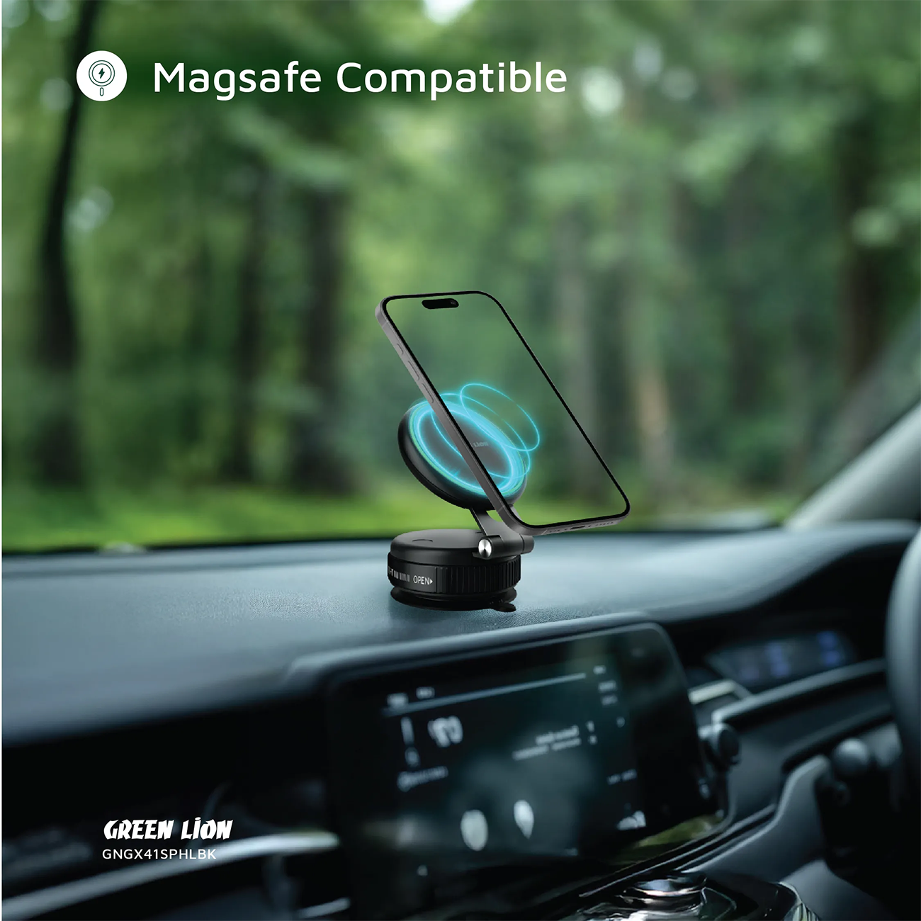 هولدر موبایل Green Lion GX-41 با 17 آهنربای N52، مکش وکیومی و بدنه مقاوم ABS، اتصال بسیار پایدار ایجاد میکند. قابلیت چرخش کامل و تنظیم چندمحوره، آزادی عمل بالایی برای تنظیم زاویه دید میدهد. سازگاری با آیفونهای MagSafe و گوشیهای دیگر با حلقه همراه، دامنه استفاده را گسترده کرده است.