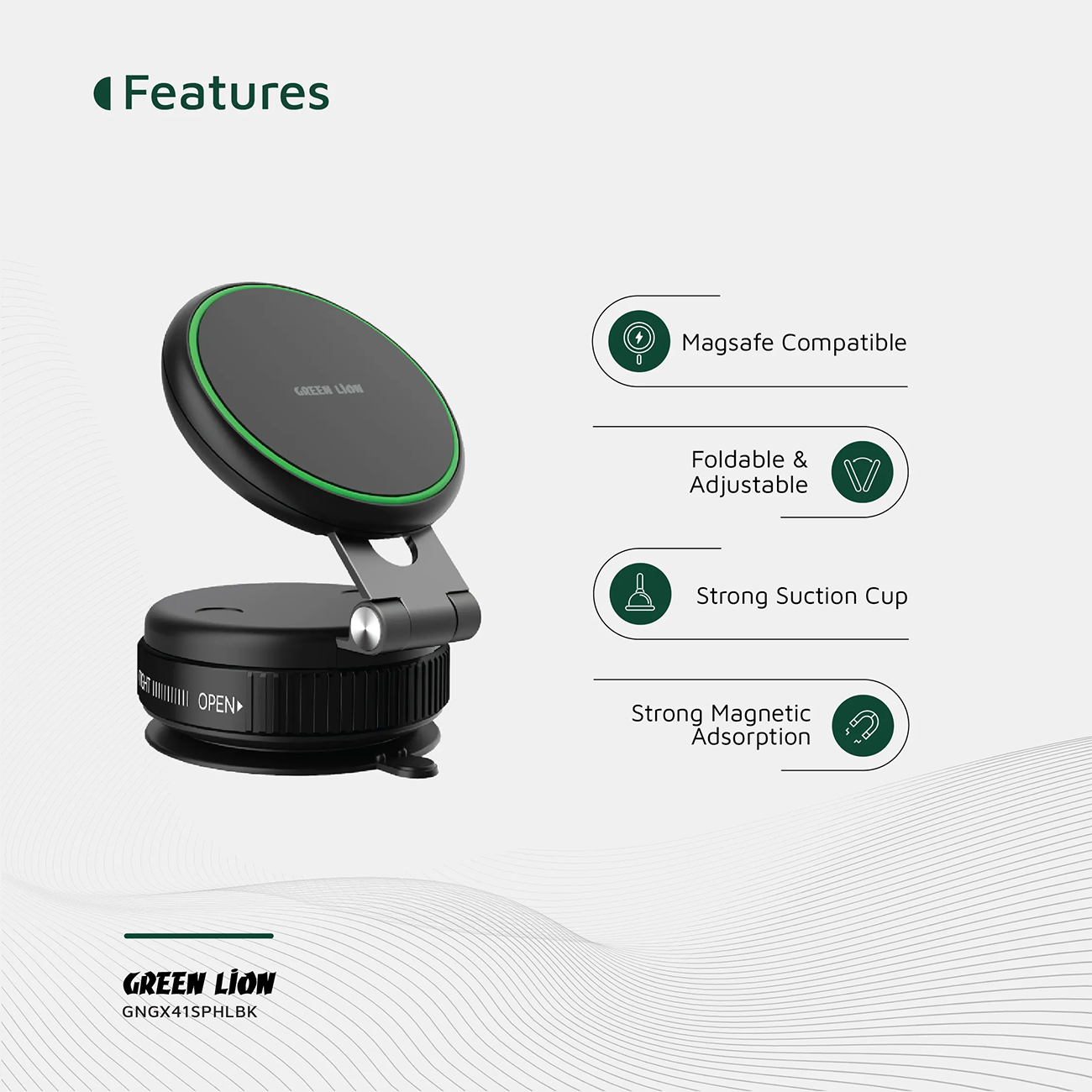 خرید هولدر مگنتی وکیومی مگسیفدار گرین لاین مدل GX-41 با بهترین قیمت، تضمین اصالت و برندینگ معتبر، انتخابی هوشمند برای نظم، ایمنی و دسترسی سریع به گوشی از فروشگاه اینترنتی دریتیز است.