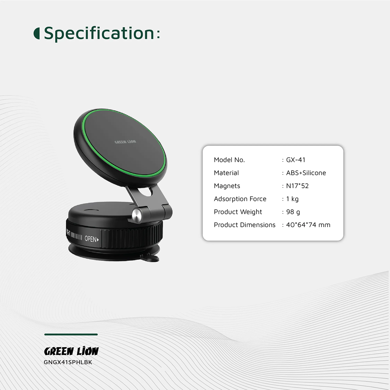 هولدر مگنتی وکیومی خودرو گرین لاین Green Lion مدل GX-41